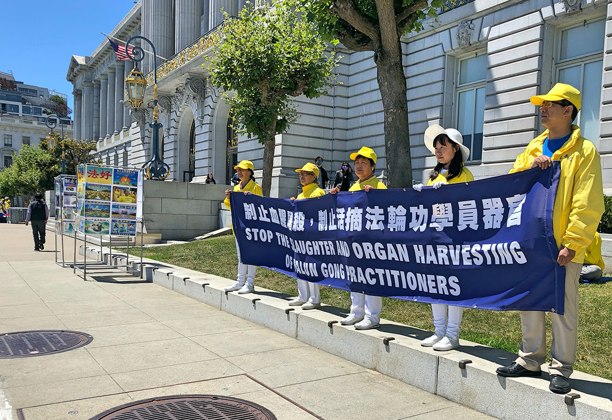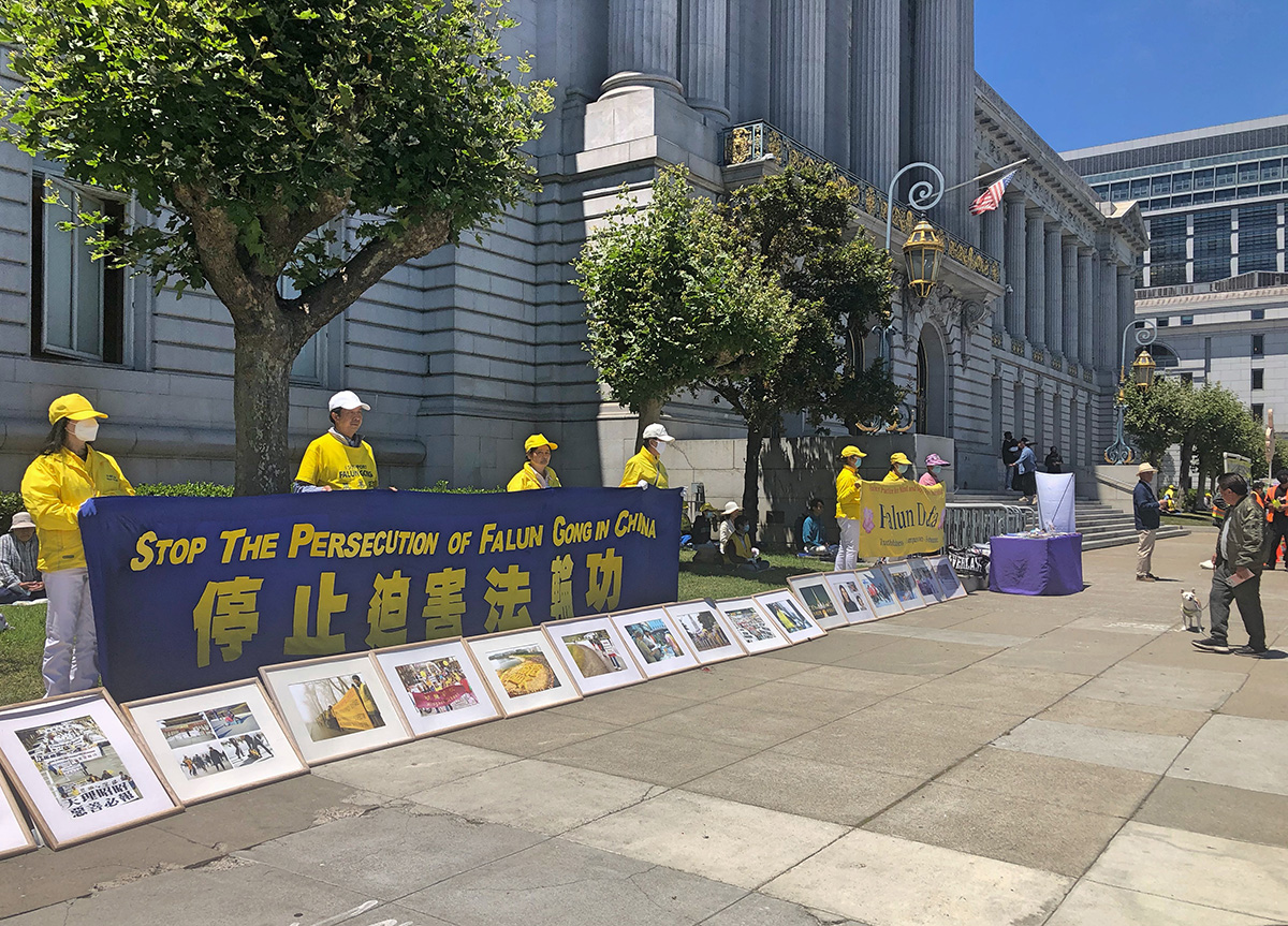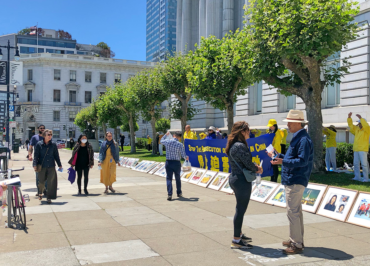 【明慧网二零二二年七月二十一日】今年是法轮功学员反迫害23年,二零二二年七月十九日中午时分,美国旧金山湾区部分法轮功学员来到旧金山市政府大楼前举办真相图片展,继续向各界人士传播法轮功的真相。