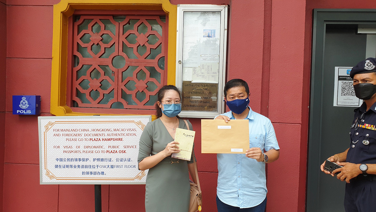![]() 图3~4:法轮功学员代表向中共驻马大使馆递交抗议信,抗议这场持续了23年的残酷迫害,引起许多官员的关注。 |