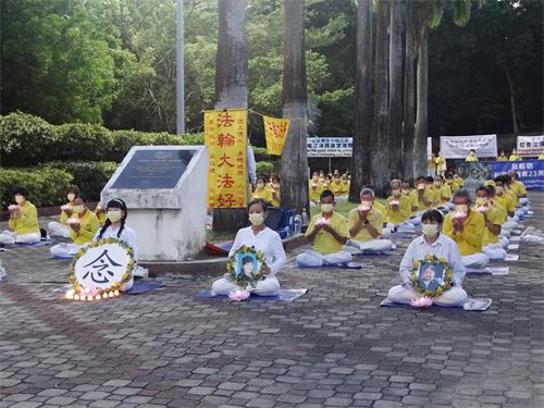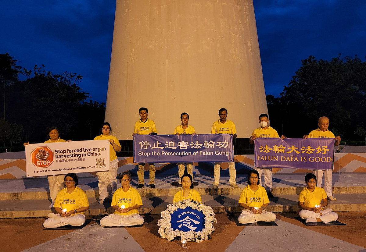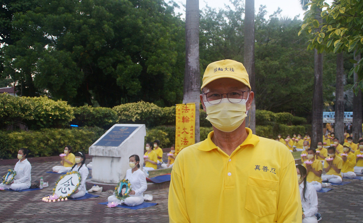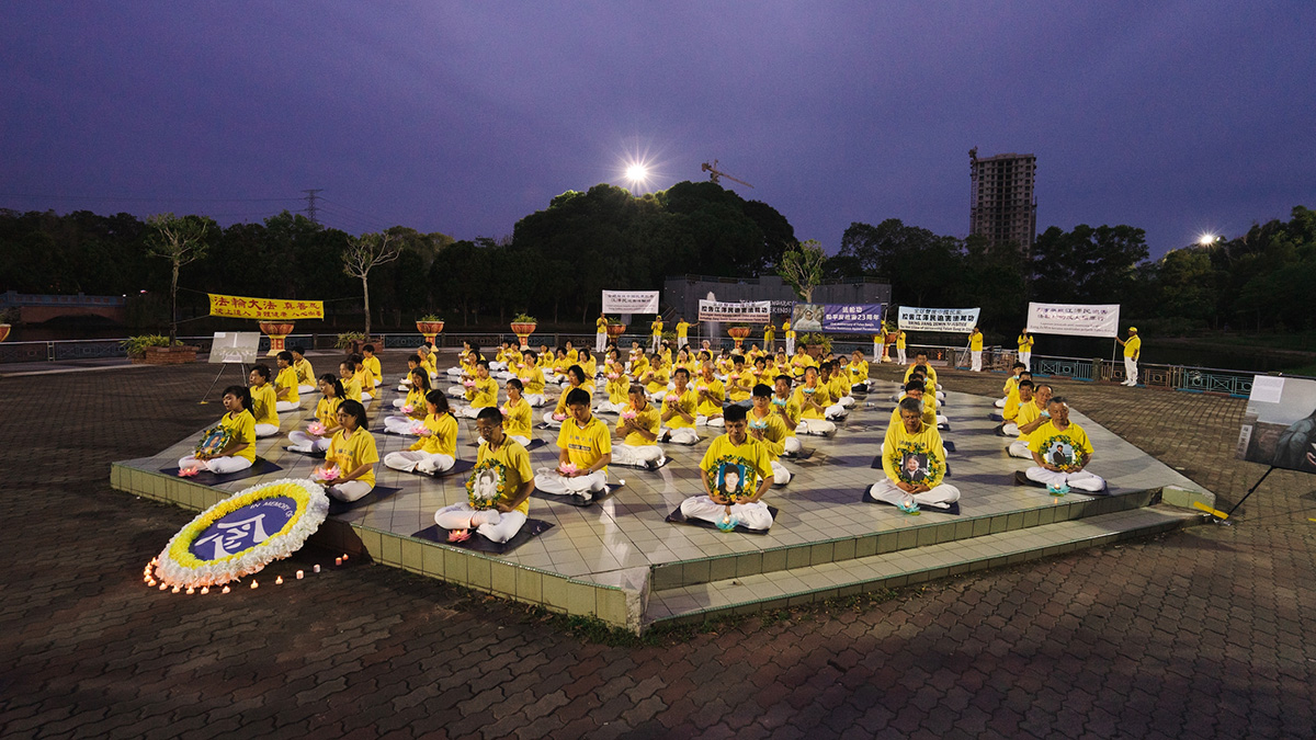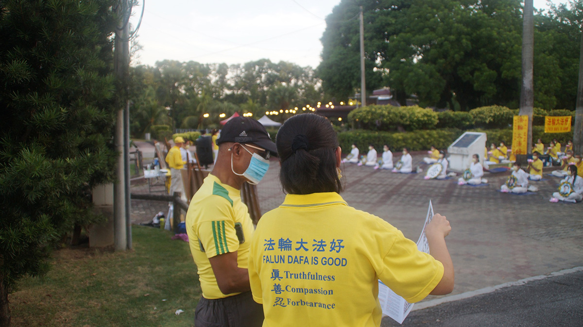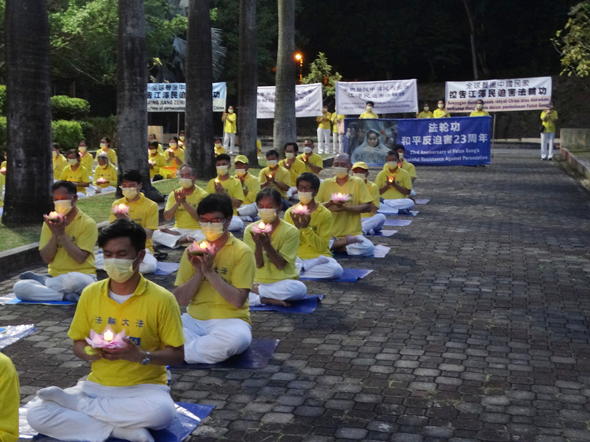 远在东马的法轮功学员,在政府放宽防疫措施后,于今年再继续举办七二零反迫害活动。七月十七日,马来西亚东马沙巴州首府亚庇(Kota Kinabalu, Sabah)部分法轮功学员来到当地炼功点热带雨林公园(Taman Ujana Rimba Tropika )举行烛光悼念活动。