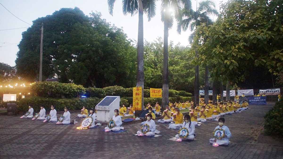 傍晚七点,法轮功学员开始举行“七二零反迫害二十三周年”哀悼会,悼念被中共迫害的同修。