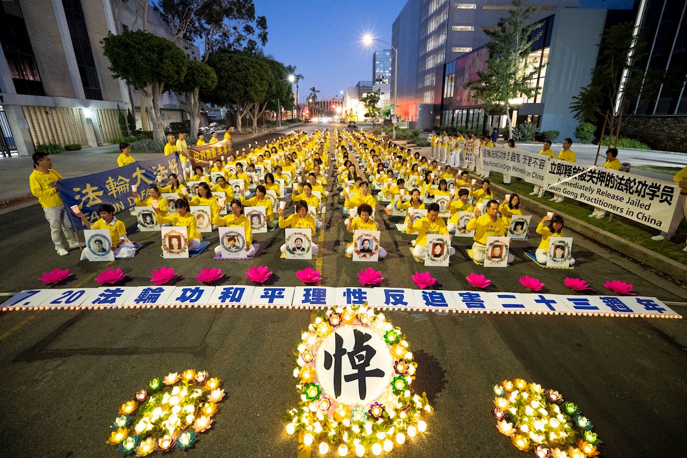 ![]() 图1~4:二零二二年七月十八日晚,大洛杉矶地区部份法轮功学员在洛杉矶中领馆前举行烛光夜悼活动,呼吁制止中共对法轮功长达23年的残酷迫害。 |
