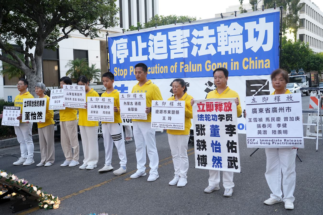 现居洛杉矶的法轮功学员宋国秀在集会上,揭示了她在中国大陆广州的三位同修王雪祯、曾加庚和陆羡明所遭受的残酷迫害。她呼吁中共当局立即释放他们。