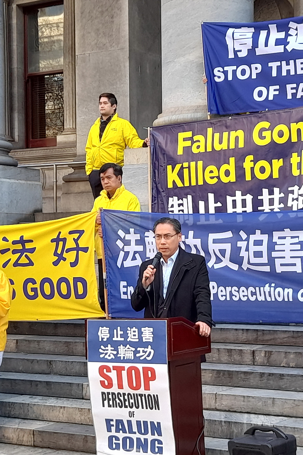 南澳越南社团主席阮先生(Linh Dang Nguyen)在发言中说:“中共为什么要对法轮功这样一个修炼团体残酷迫害?因为法轮功所主张的真、善、忍真理与中共格格不入。”