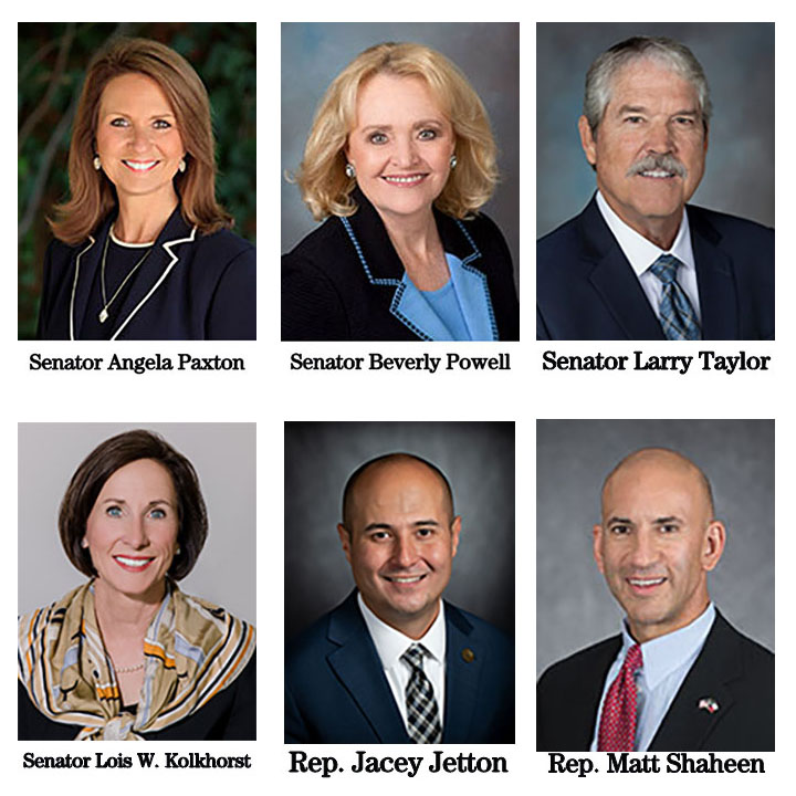 支持信函来自于德州州参议院: 州参议员安吉拉·帕克斯顿(Texas State Senator Angela Paxton),州参议员贝弗利·鲍威尔(Texas State Senator Beverly Powell),州参议员拉里·泰勒(Texas State Senator Larry Taylor),州参议员路易斯·W·科尔克霍斯特(Texas State Senator Lois W. Kolkhorst),以及德州众议院:州众议员杰西·杰籐(Texas House of Representatives Jacey Jetton),州众议员马特·沙欣(Texas House of Representative Matt Shaheen)。