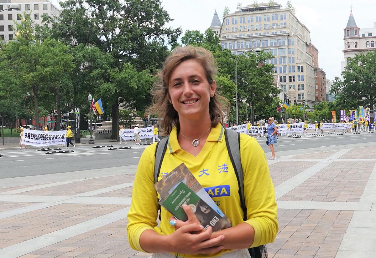 今年是尼可修炼后第二次来华盛顿DC参加“七·二零”反迫害游行。她说:“因为法轮大法教人做好人,教人从里到外进行自我提升,这正是法轮大法所教导我的。我意识到,如果世上的每一个人都从自我做起,向正的方向转变,会给这个世界带来改变。中国政府用谎言毒害民众,迫害教人做好人,如此平和的功法,我就是要来这里让更多人知道真相。”