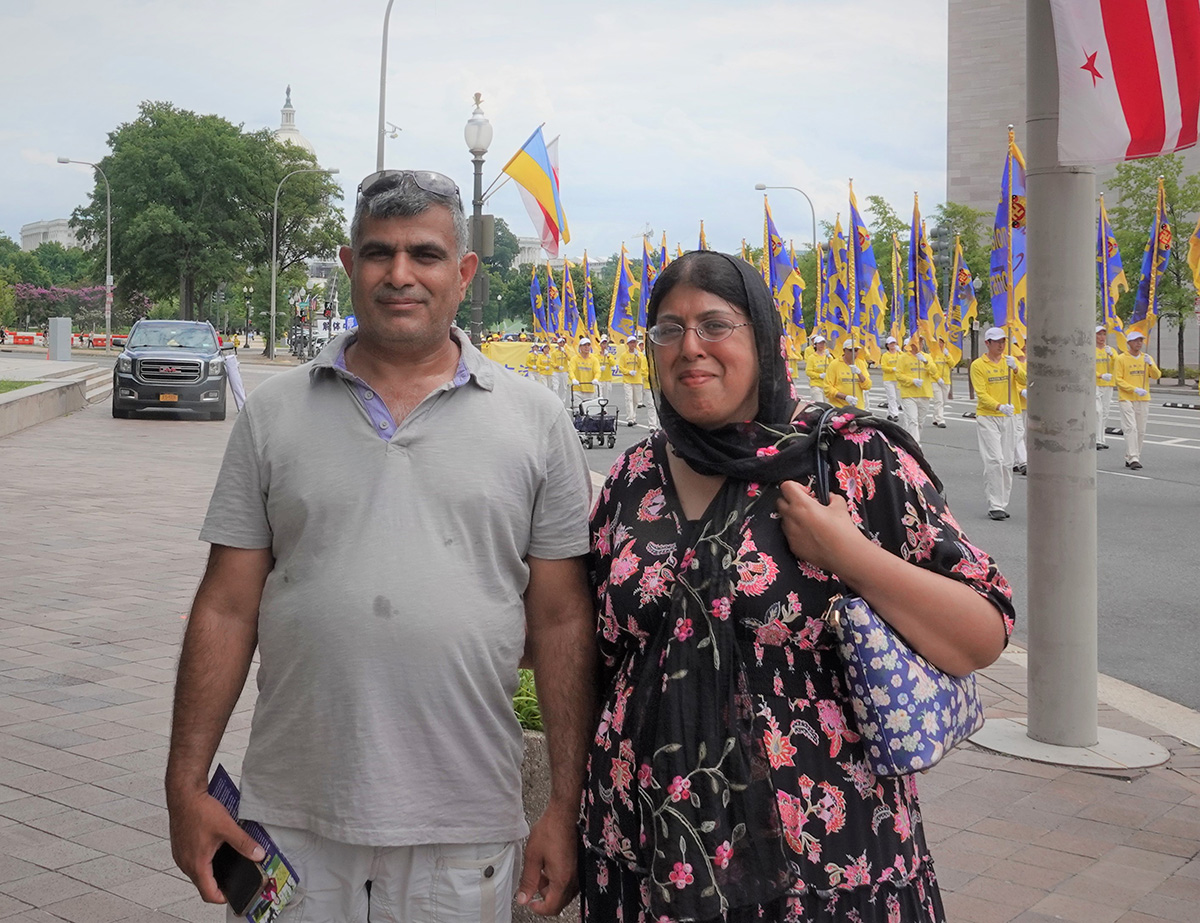 英国曼城地方政府议员塔希达(Tahida)和先生来华盛顿观光。他们第一次听说法轮功学员在中国遭受到的迫害,夫妇俩表示:“中共迫害这样一群平和的人,真是耻辱。他们能在美国首都举办这样大规模的游行,真的很好,这样和平的抗议,唤起人们的关注,最终会带来改变。”