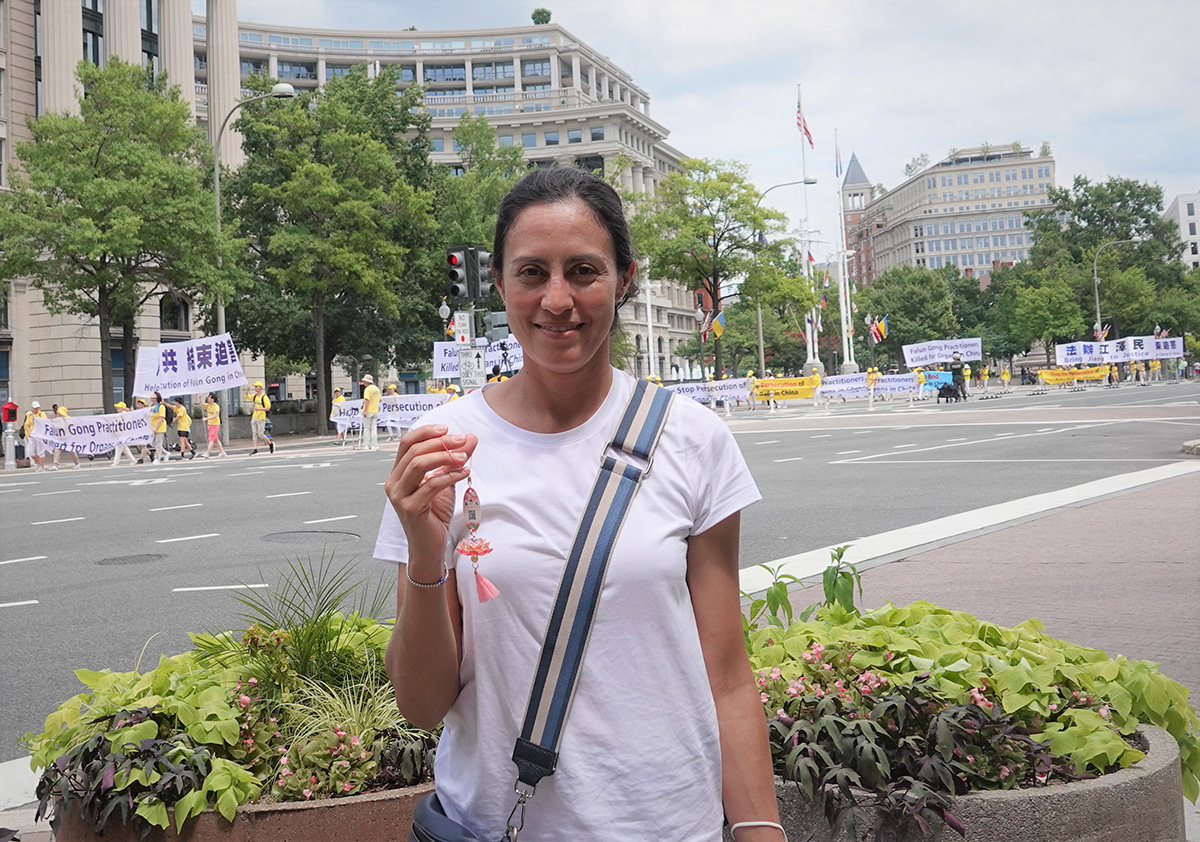大华府地区的教师阿迪纳·多科特(Adina Docter)说:“这是非常美、平和的游行,我喜欢他们传递的信息,这两年我见到过很多抗议示威,但是这是第一次看到如此不同寻常的游行,他们那么安静,与他们传递的信息一致,我认为中共政府应该停止迫害修炼法轮功的民众。”