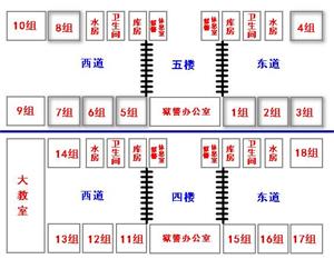 集训监区共有18个组,1至8组(均在五楼),是集中转化迫害法轮功学员的地方,新来的法轮功学员会被分别拆分关押在这几个组。五楼的东道有1、2、3、4组,西道有5、6、7、8、9、10组。四楼主要是新收犯人,东道有15、16、17、18组,西道有11、12、13、14组。