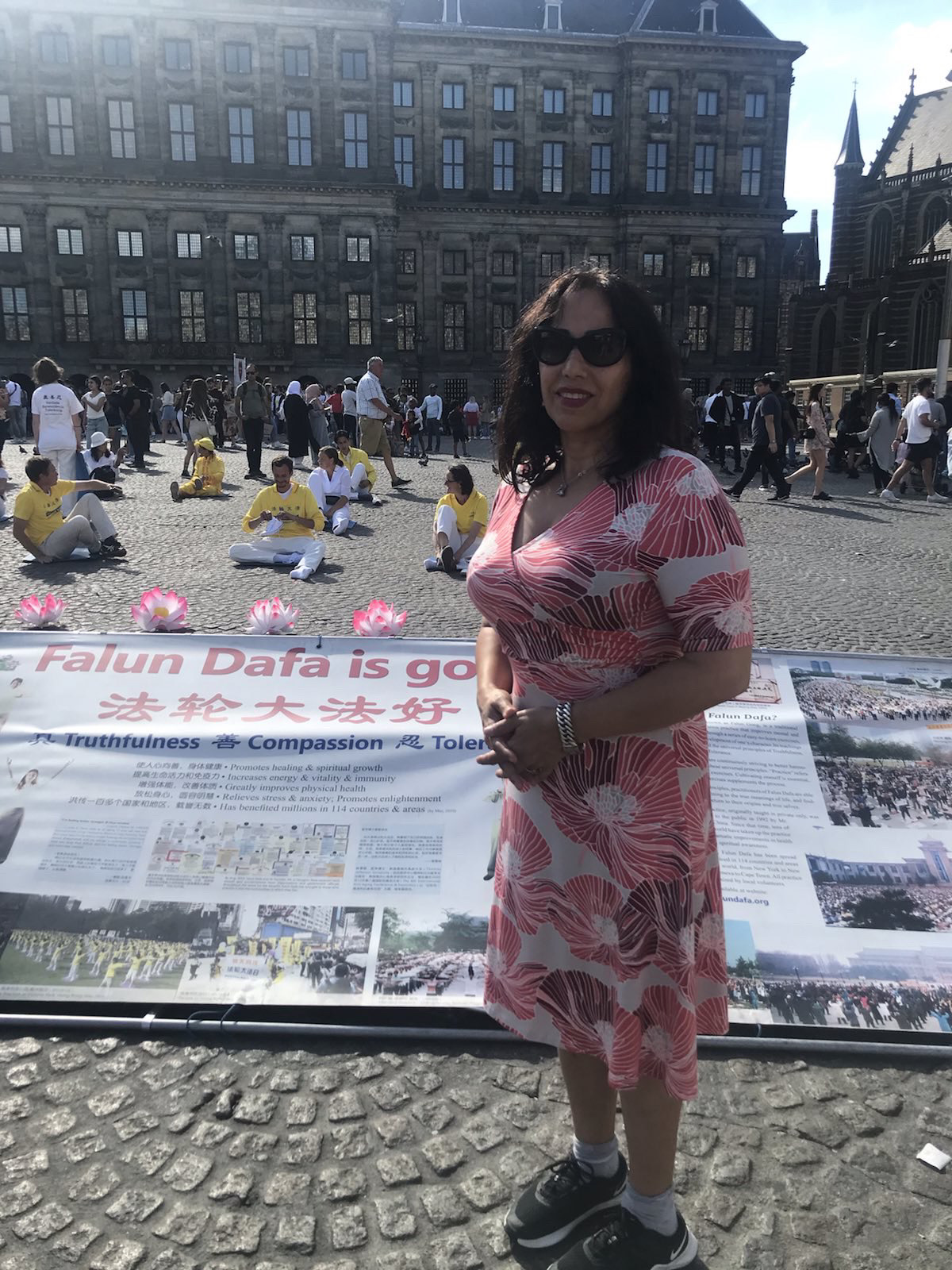 罗亚·卡沙尼(Roya Kashani)女士是一位美容师和皮肤专家,她拥有自己的公司。集会上她告诉法轮功学员:“今天,当我在达姆广场看到人们被折磨得如此惨烈时,我的心深感悲痛,我认为这非常可怕。我们已经生活在二零二二年了,居然还有活摘器官去卖的事情发生?!令人难以理解,这场迫害必须停止。”