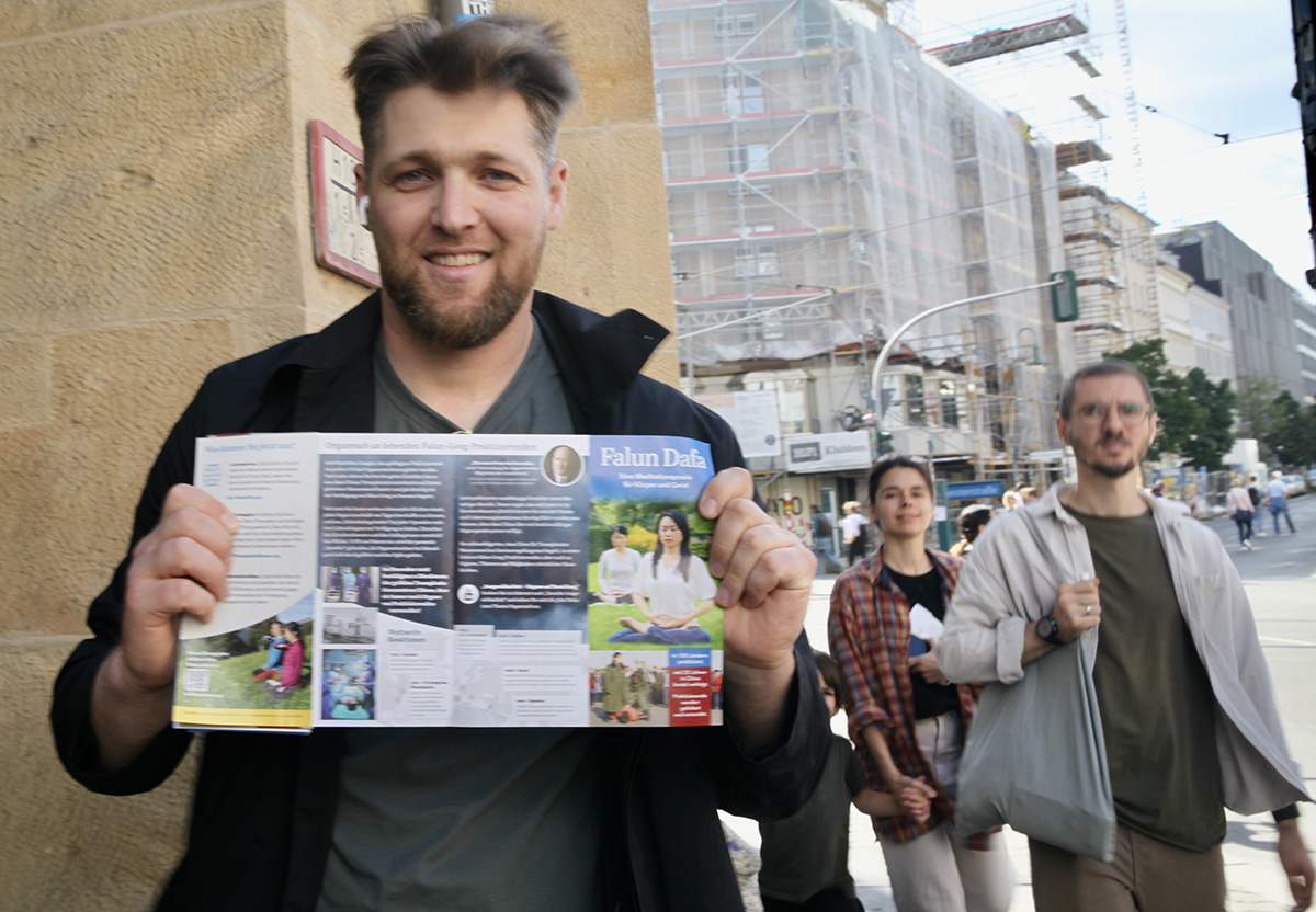 ![]() 图15:大学工商管理和经济学讲师海登布鲁特先生(Matthias Heydenbluth)赞赏法轮功学员在公开场合揭露中共的迫害,说:做得非常好。 |