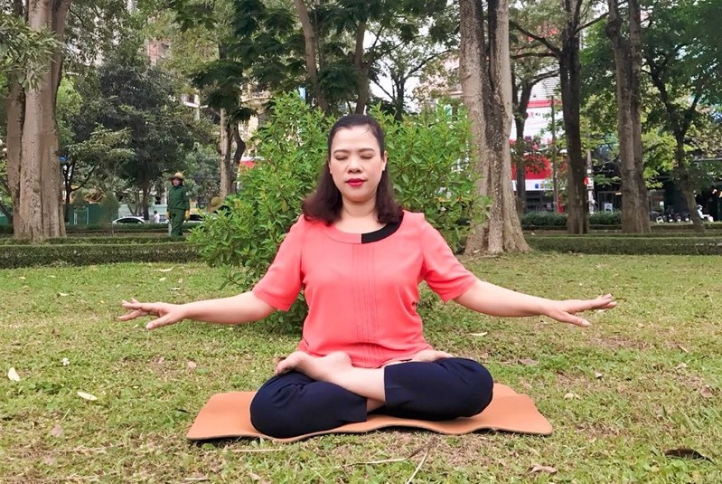 ![]() 图3:阮梅图女士在炼法轮功第五套功法——神通加持法 |