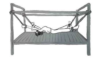 ![]() 中中共酷刑折磨示意图:“抻刑”(“五马分尸”) |