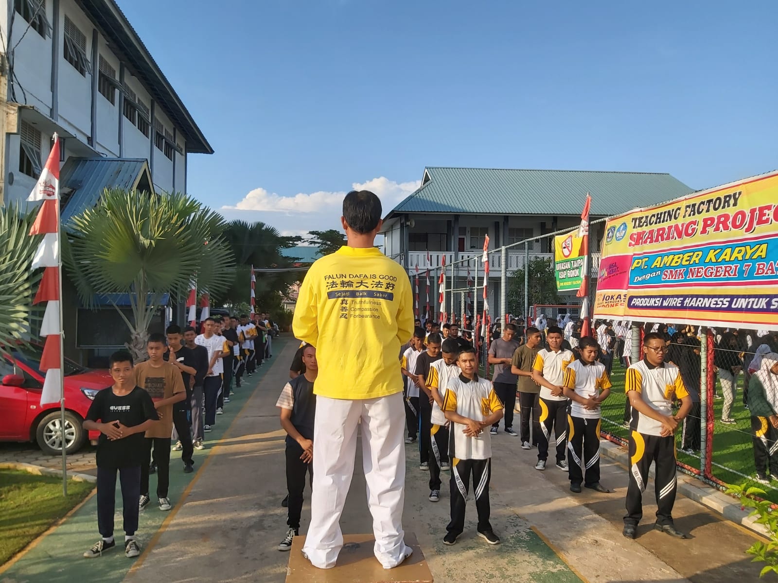 ![]() 图1~4:二零二二年七月二十一日上午,印尼里奥群岛省巴丹岛法轮大法学员应邀请向一千多名巴丹岛SMKN7高中生介绍法轮功功法 |