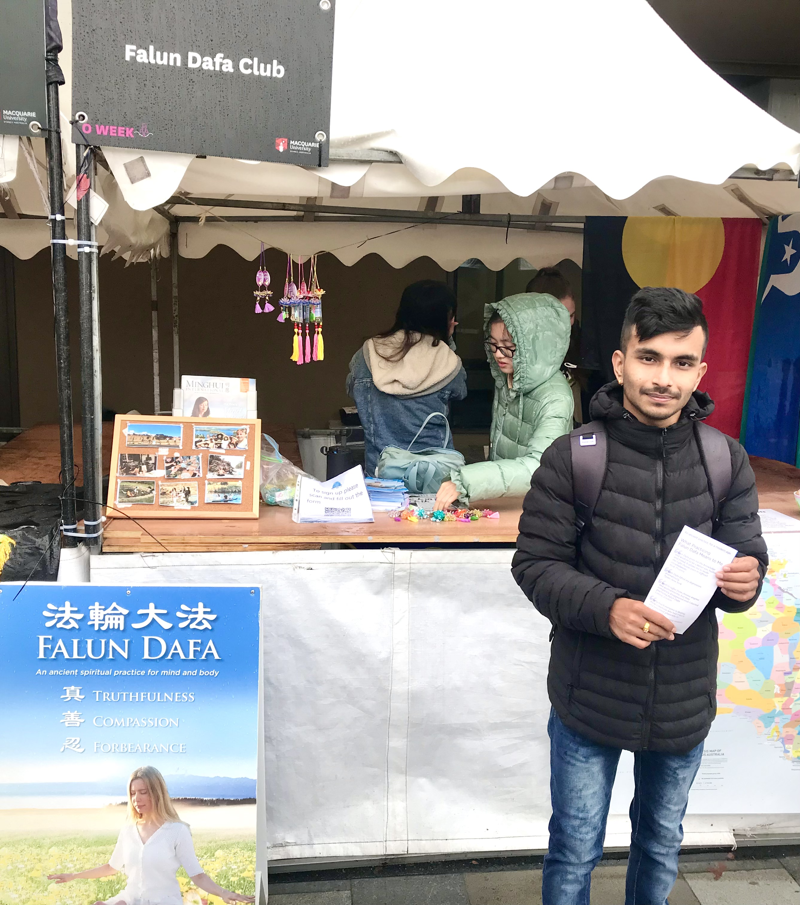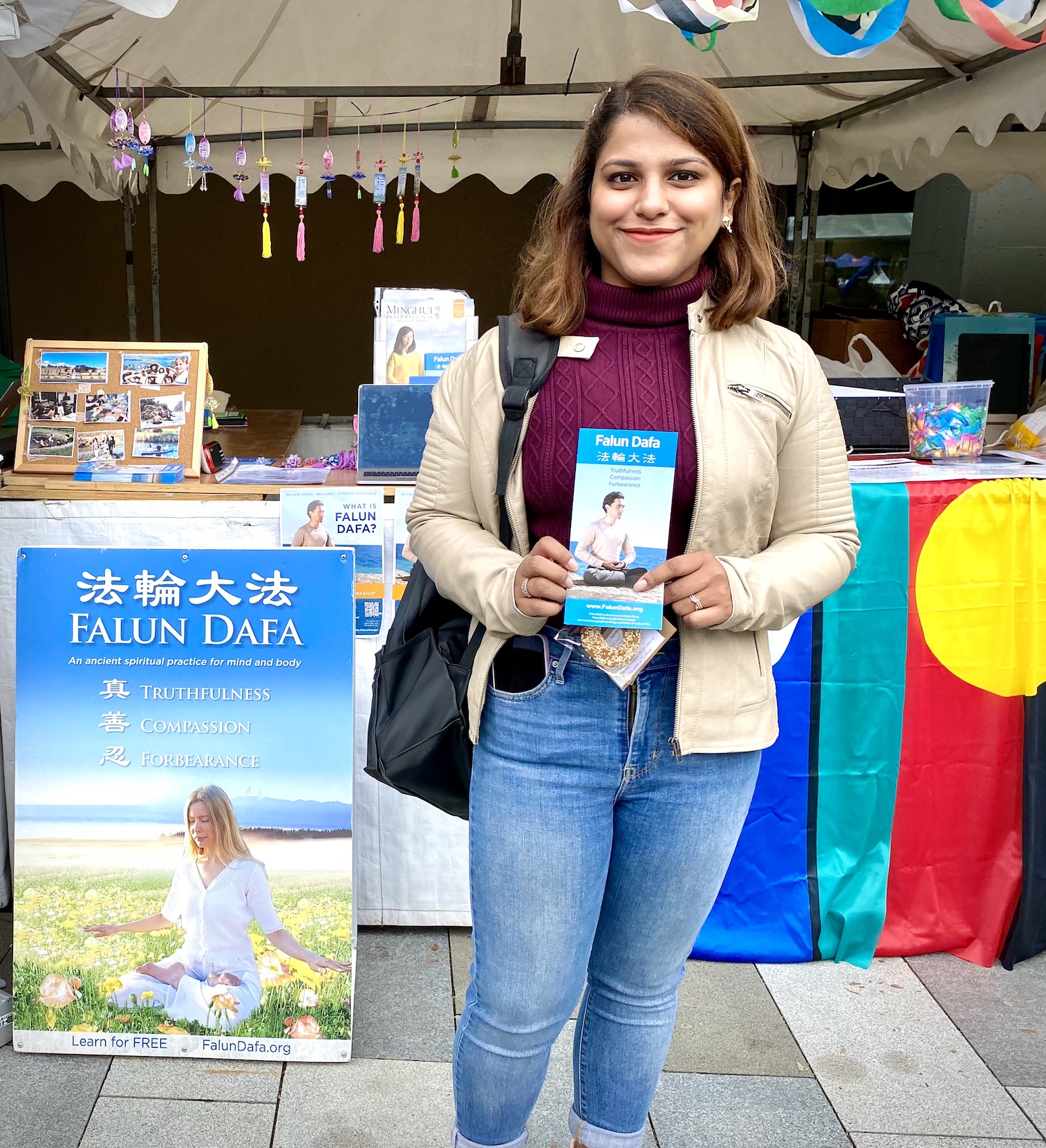 几天前,梅哈克(Mehak)第一次来到悉尼,在麦考瑞大学攻读工程硕士。她一走到法轮大法俱乐部展位就被法轮大法吸引。她说:“我认为这是一个新的让人积极向上的方法,我从来没有尝试过,但我认为这将会是一个很好的体验。”