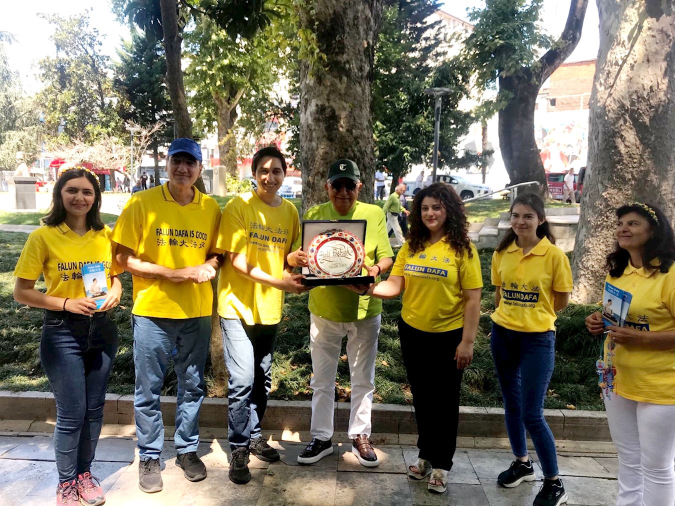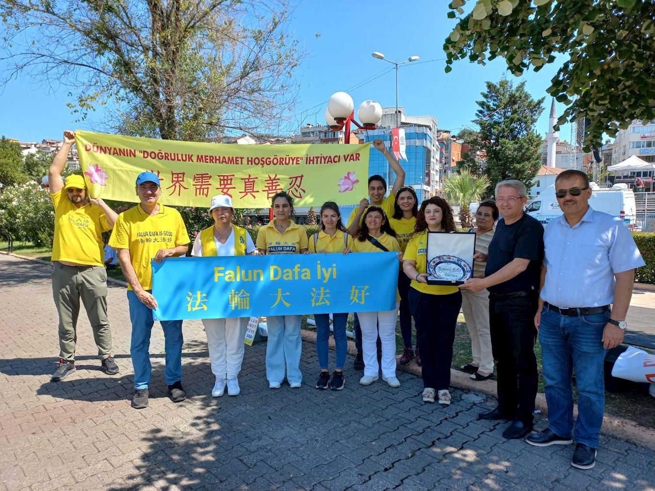 该市市长哈利勒·波斯比耶克会见了法轮功学员。当学员想告诉波斯比耶克更多关于法轮大法的信息时,他说:“我知道有关你们的一切。我看了你们的作品和视频。你们是一个非常正面和美好的团体,我们感谢你们参加我们的节日”,并给每位学员颁发了节日参与证书。