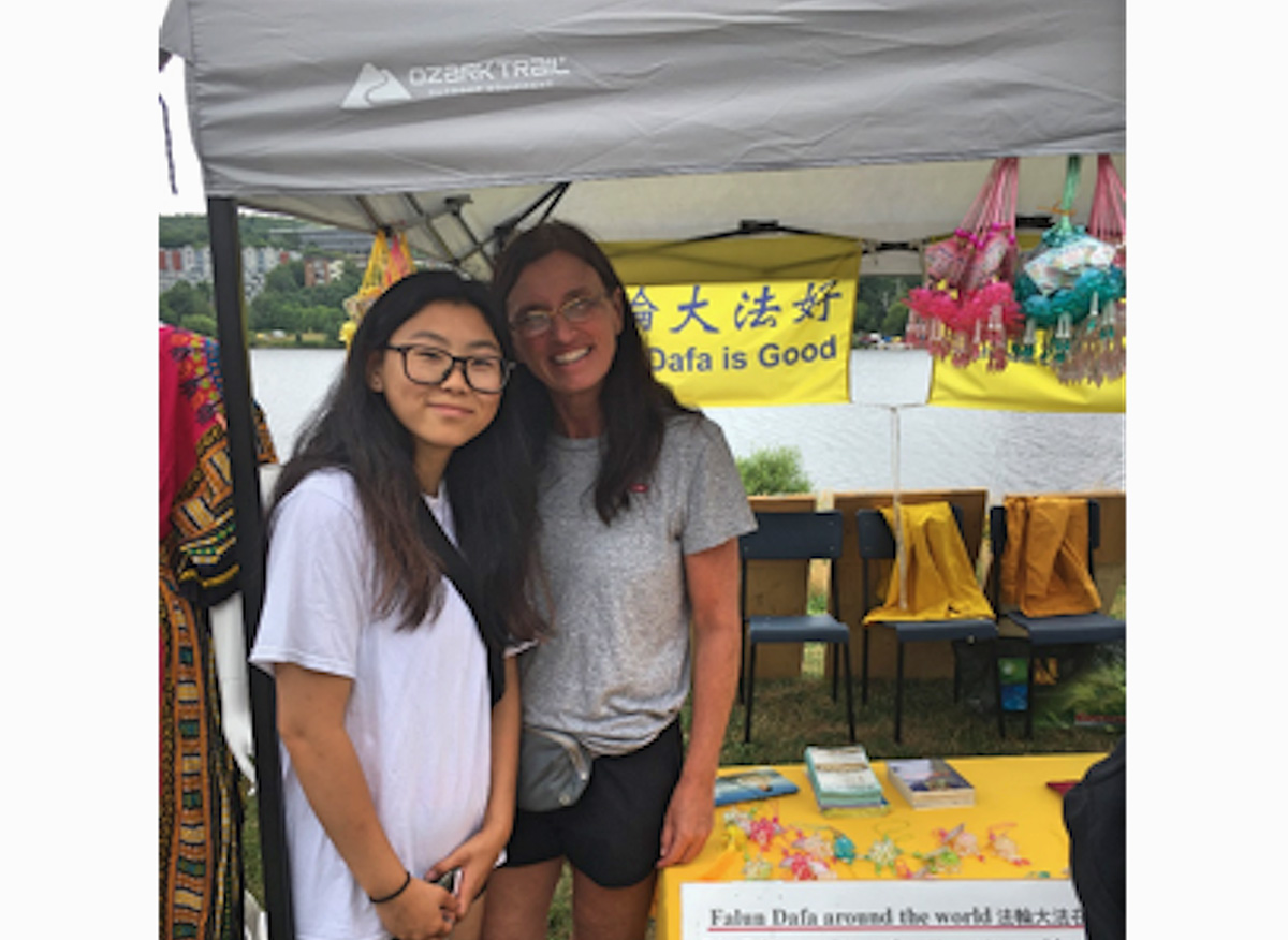 圣约翰斯教堂的一位居民和她从中国收养的女儿一起来到展位前,她非常希望更多了解法轮大法。当她听到中共对法轮大法修炼者的迫害和活摘器官的消息后,感到非常震惊。她曾于二零零七年与养女一起访问了中国,但直到现在才知道了迫害的情况。她认为,迫害不应该发生,应该立即停止。她还对当地法轮大法学员传播真相表示赞赏。