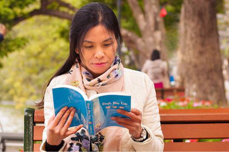 ![]() 图1:芳(Phuong)在读《转法轮》 |