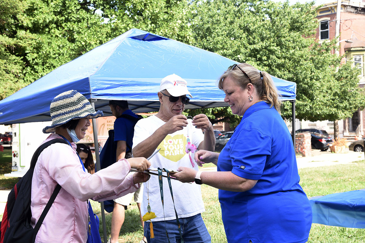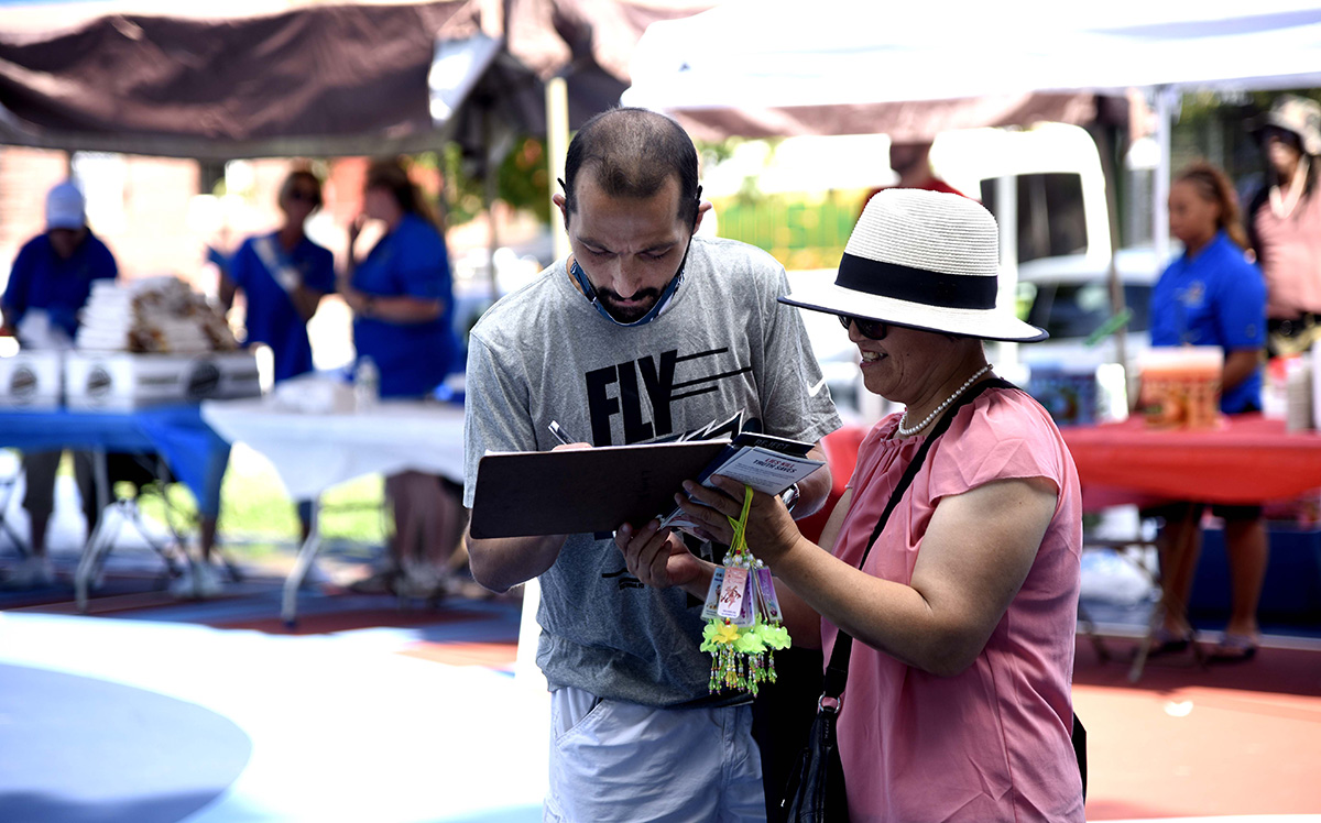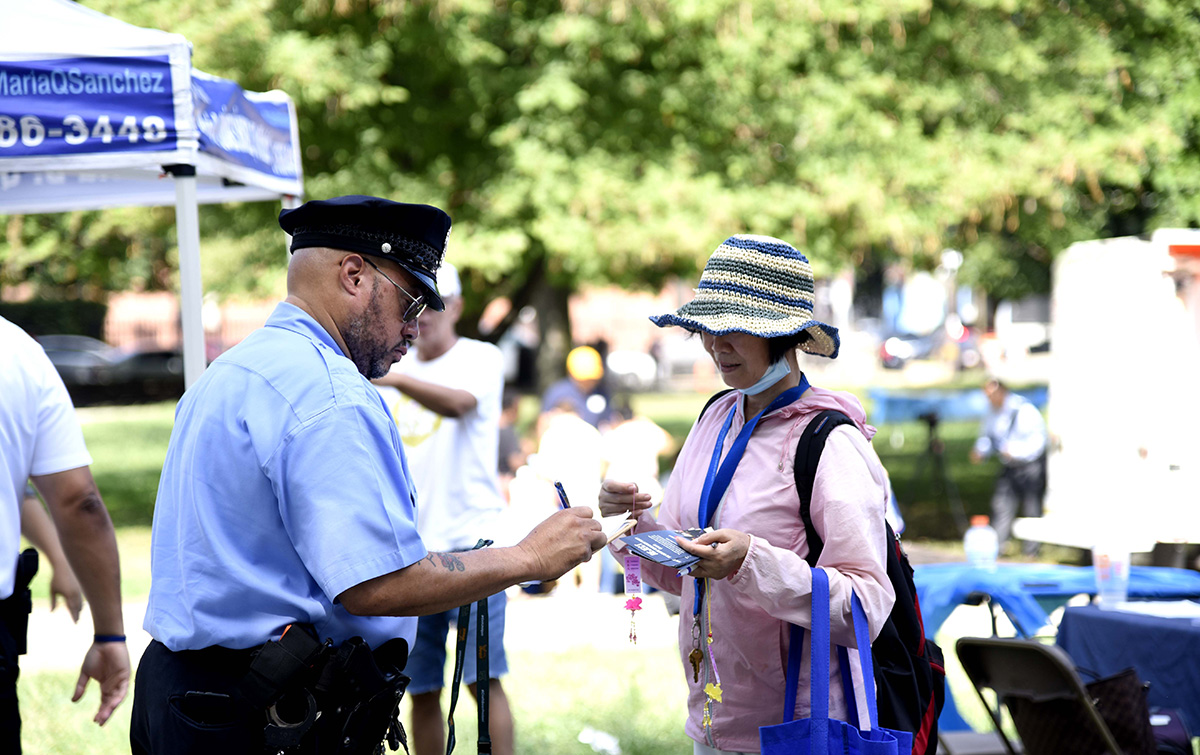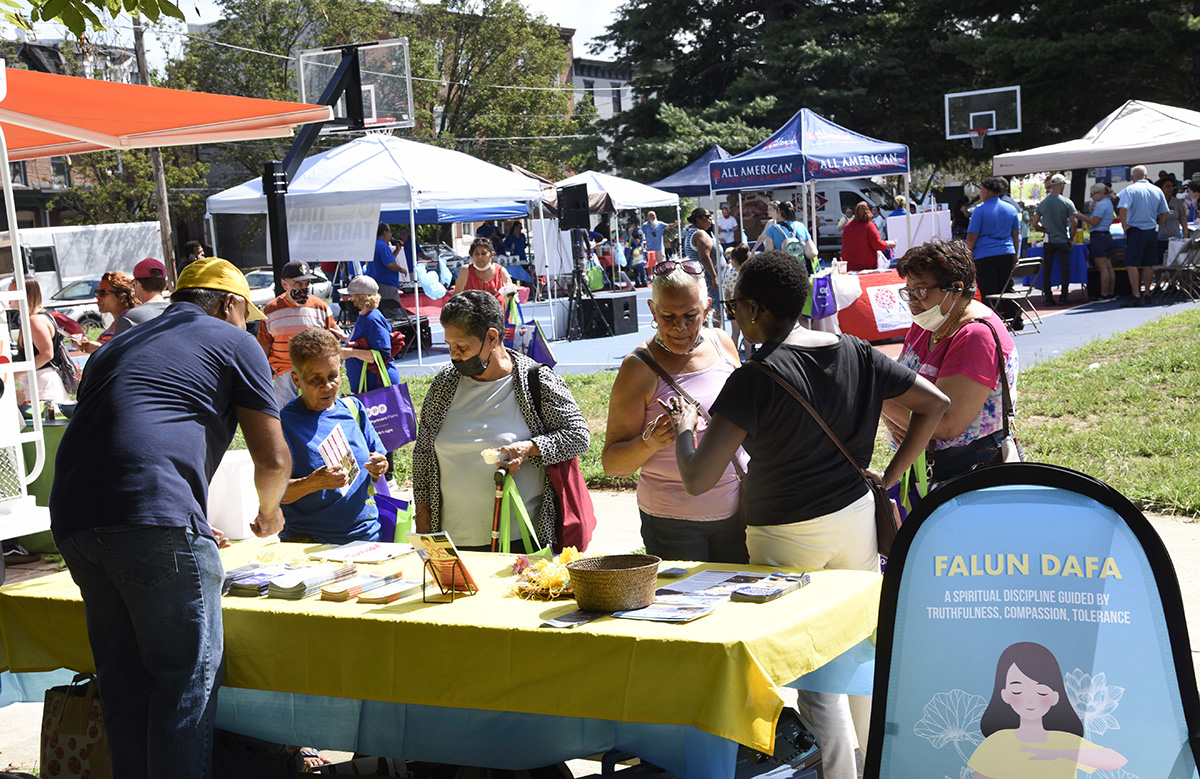 ![]() 图1~2:8月11日,宾州参议员塔塔格利昂举办的社区活动日,很多民众到法轮功展位了解真相。 |