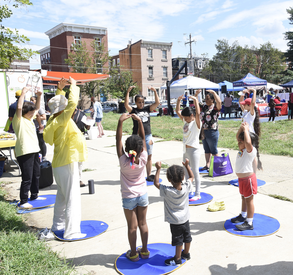 ![]() 图7~8:8月11日,宾州参议员塔塔格利昂举办的社区活动日,大人孩子都来学炼法轮功。 |