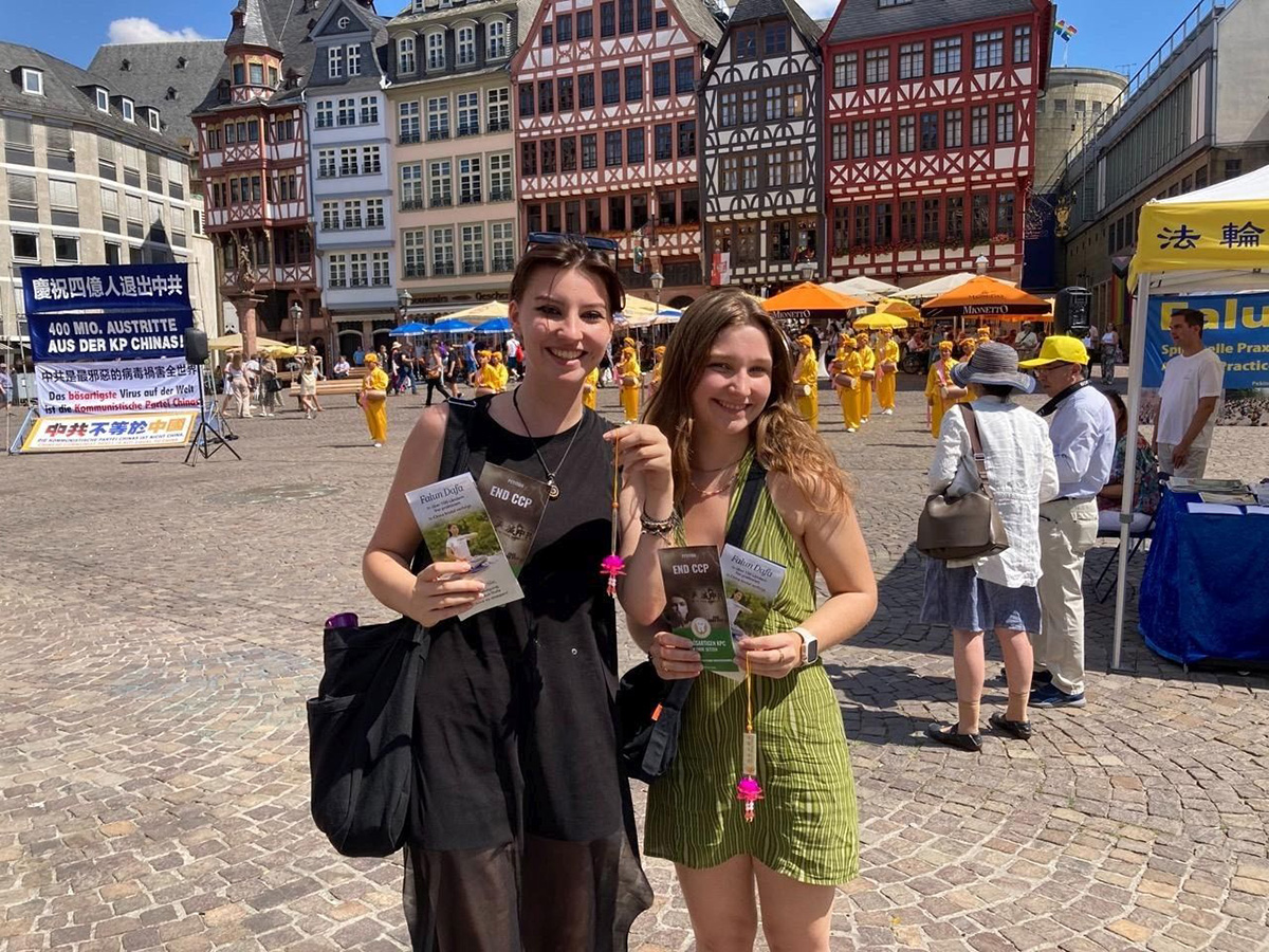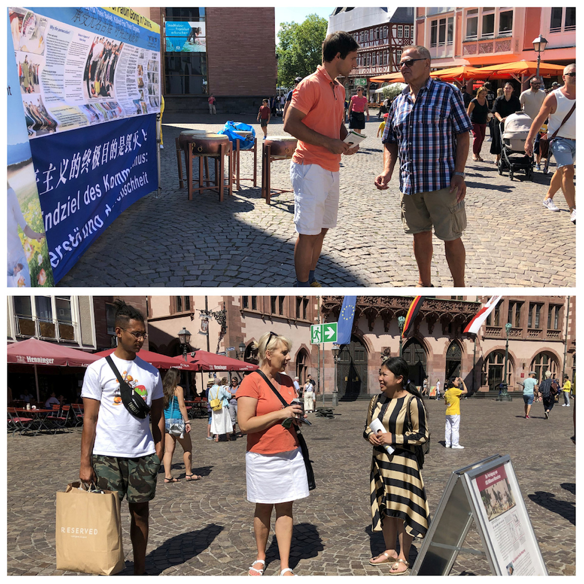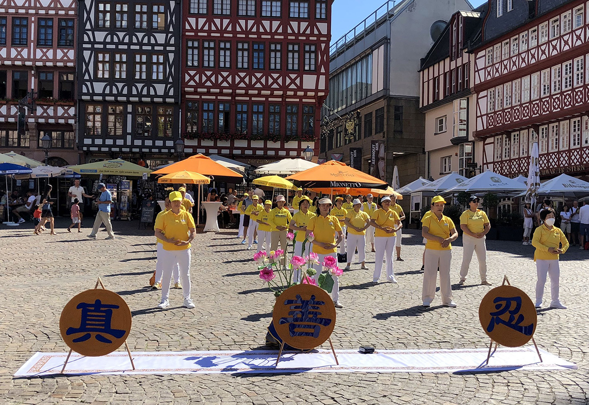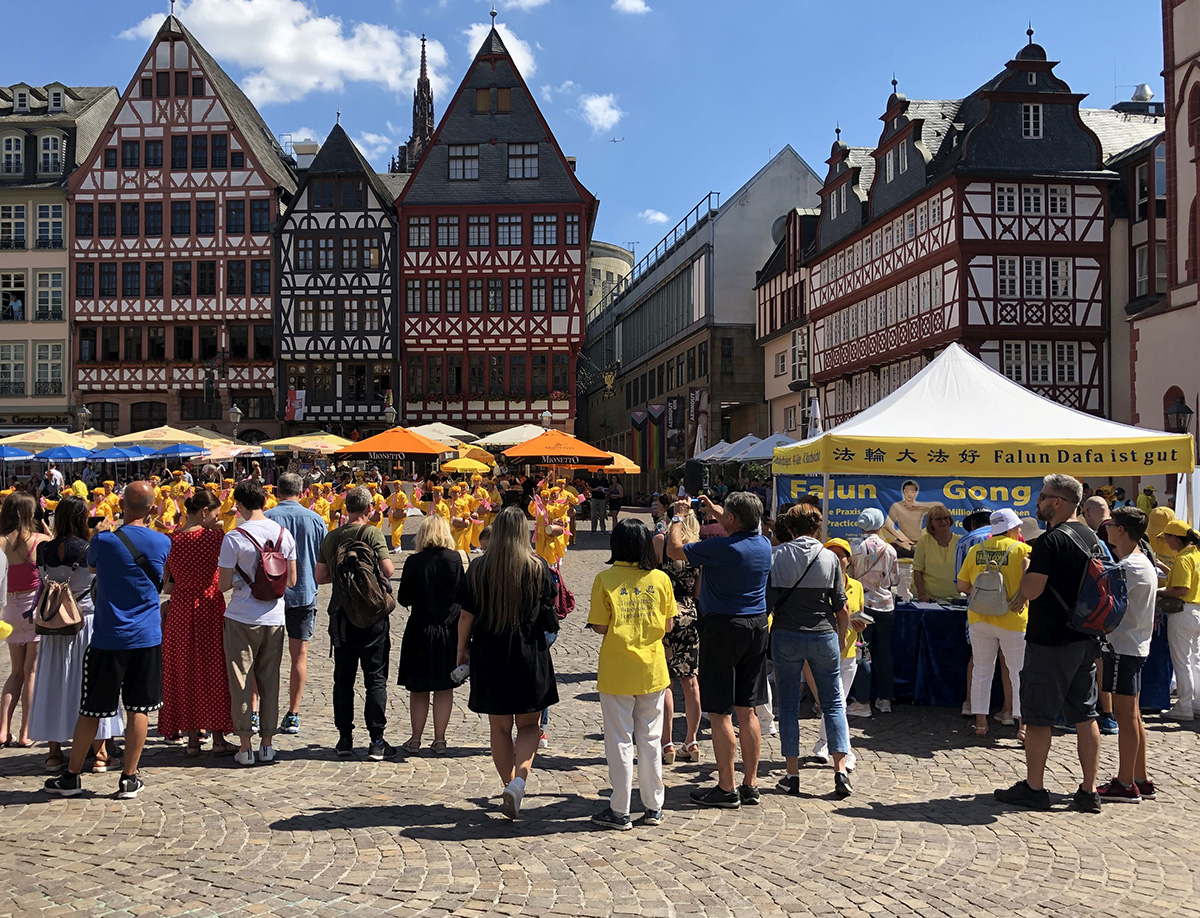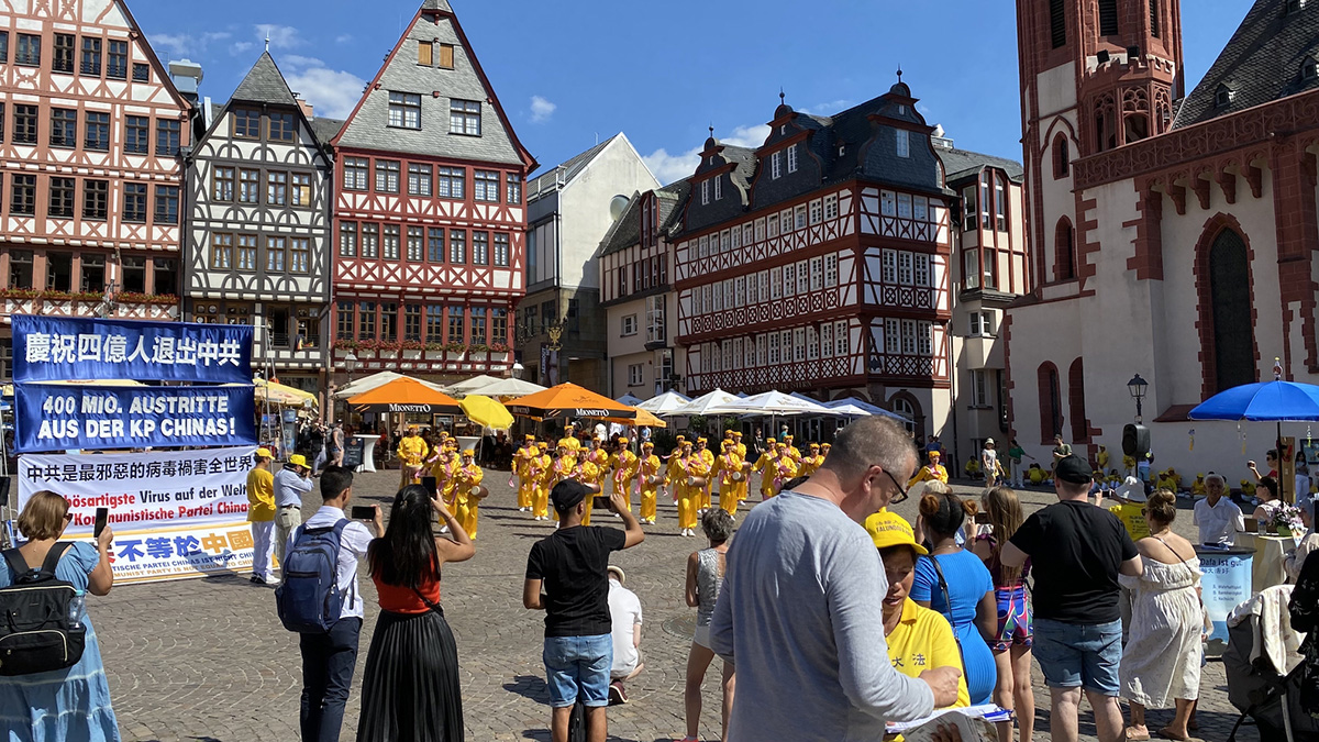 ![]() 图1:二零二二年八月十三日,法轮功学员聚集在德国金融中心法兰克福罗马广场,举办大型活动庆祝四亿中国人抛弃中共,获得新生 |