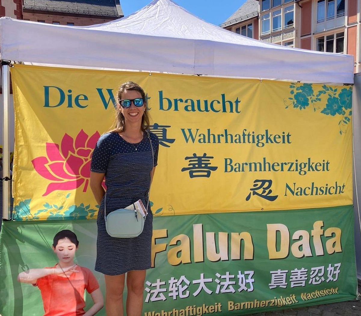 德国游客凯塔琳娜(Katharina)赞赏的说, “这(真、善、忍)是非常有价值的,应该受到尊重。这个修炼的群体,遭到禁止,真的是不可思议,令我震惊。”卡塔琳娜说。