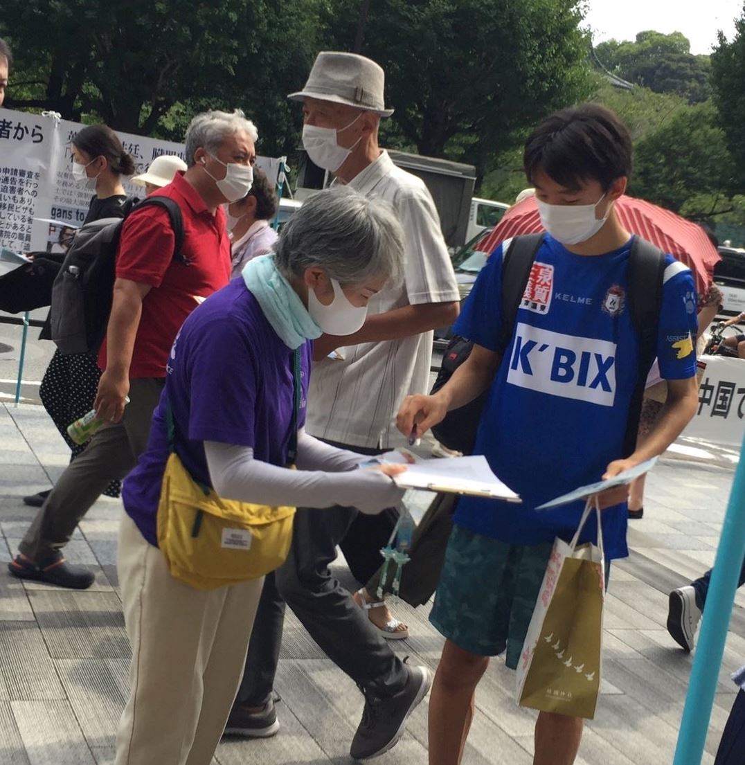 有的踊跃签名的日本民众表示,他们愿意成为支持法轮功反迫害的力量。有的民众表示,今天是终战日、是对和平的向往,可是令人痛心的活摘罪恶还在发生;有的民众说去年得到的祝福的小莲花还在家里的门口处悬挂;还有的日本民众也表示:“不给中共逞凶,法轮功持久坚持很伟大,鼓舞人心,了不起!”