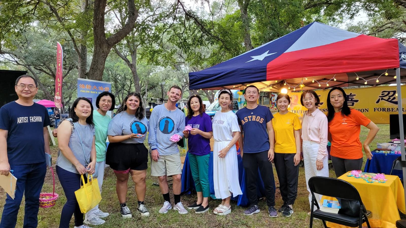 学员们向当地美国民众讲述中国大陆法轮功修炼者所遭受的残酷迫害,并提到共产主义不仅仅在共产邪*党-国家行恶,更以不同的形式渗透、毒害了全世界。学员还推荐这些美国人上网阅读免费的《魔鬼在统治着我们的世界》、《·九·评*共产党》等英文版电子书。不少民众立刻用手机拍下书的封面,说一定会上网查看,并会分享给朋友家人。有商家拿着书拍照纪念。有的美国民众到学员的展位学叠小莲花,并和学员们开心的合影。一位女孩的母亲了解真相后,再次来到摊位前,激动地说:“我知道你们在干什么了。”