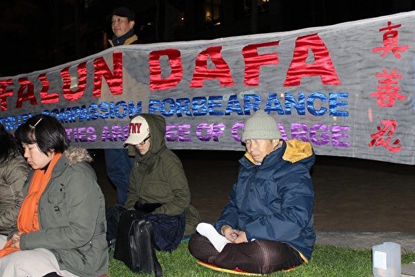 ![]() 图10:图为二零一二年“七·二零”十三周年之际,朱女士(右一)参加七月二十日晚墨尔本法轮功学员在市中心城市广场举行的烛光悼念活动。 |