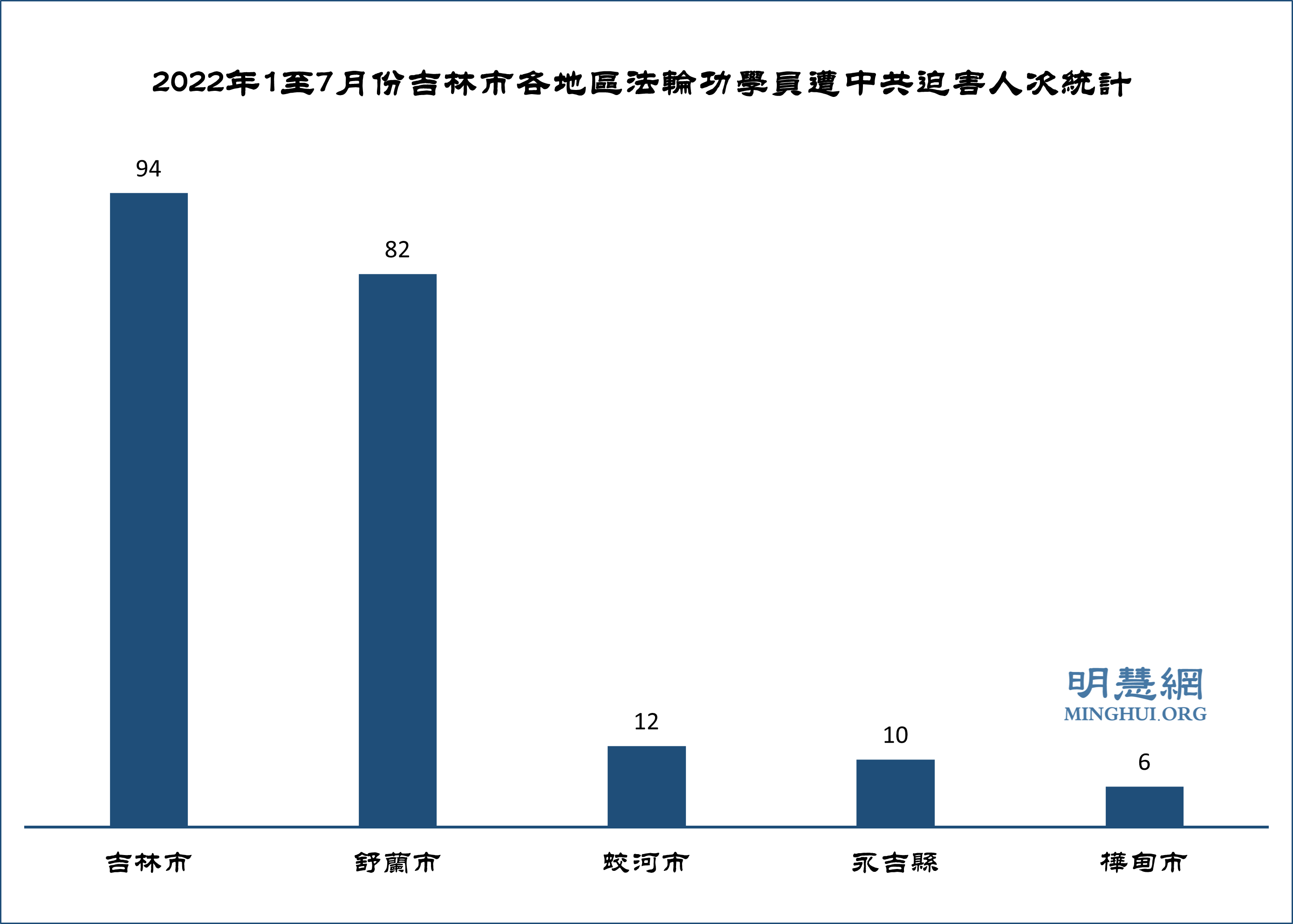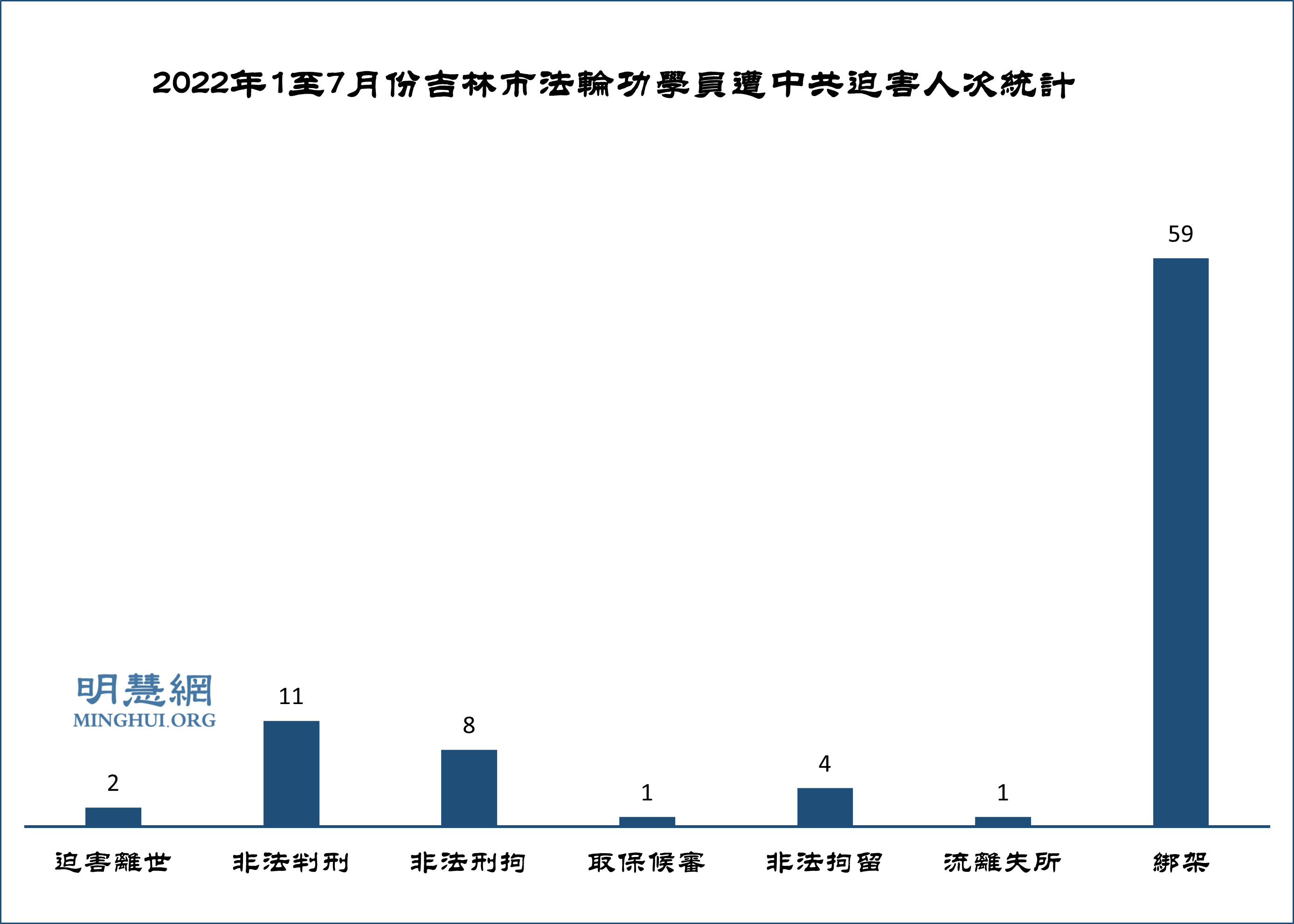 ![]() 图1:2022年1至7月份吉林市法轮功学员遭中共迫害人次统计 |