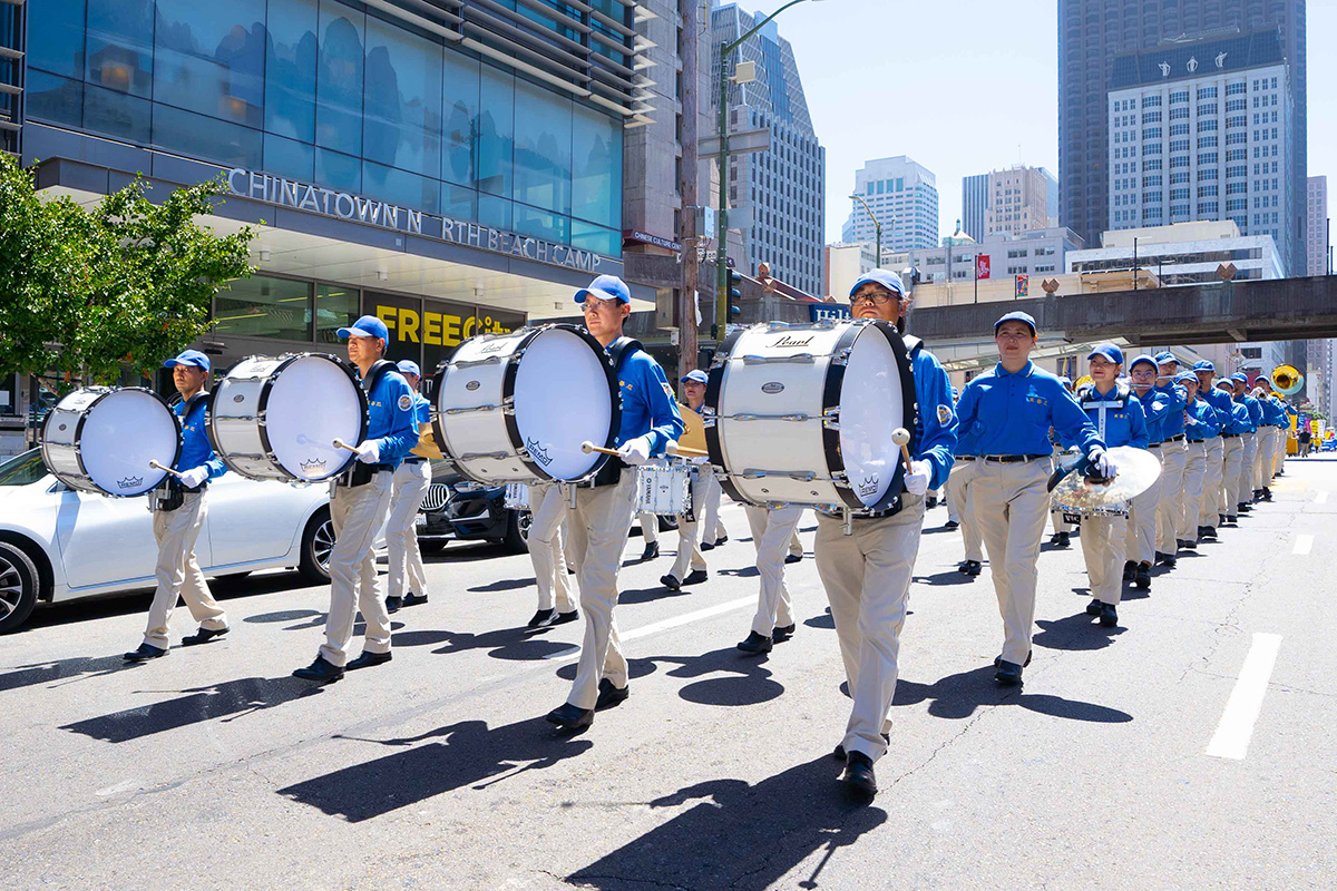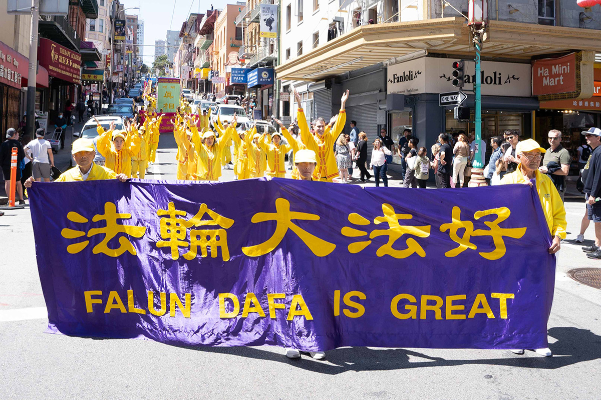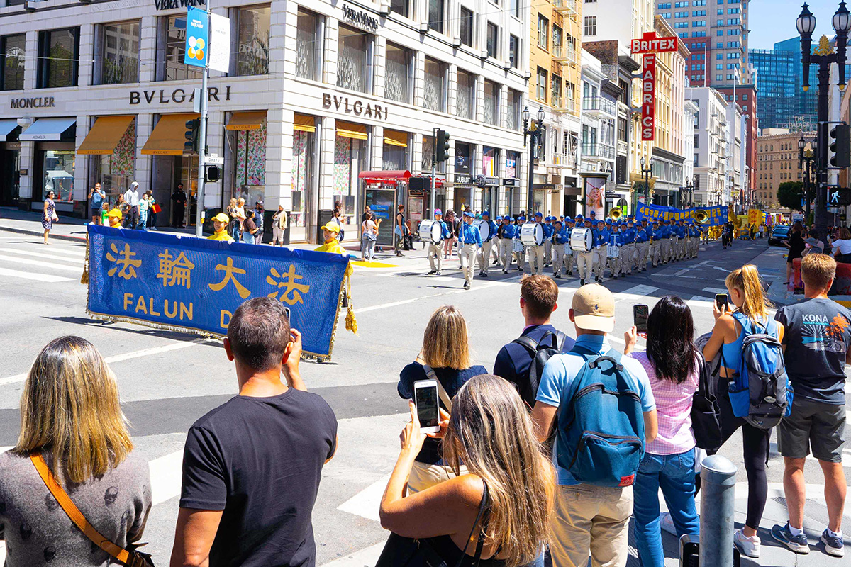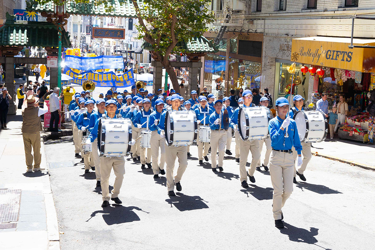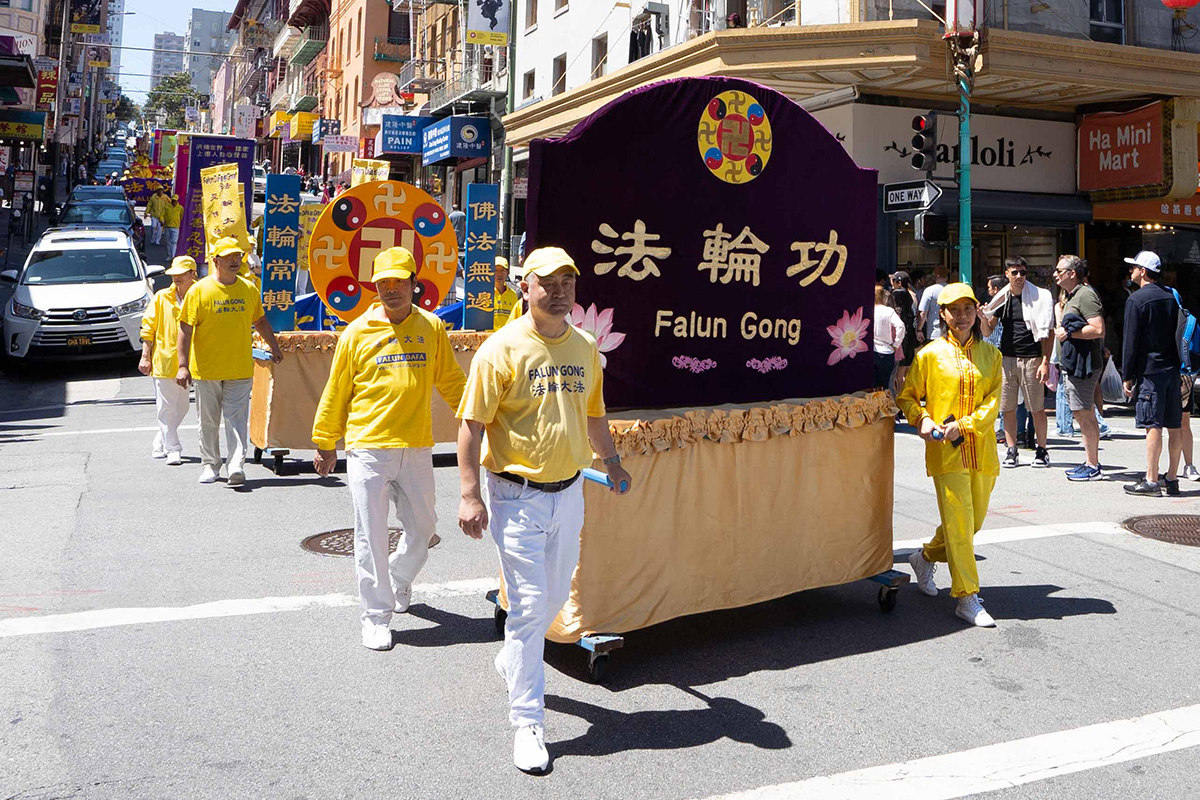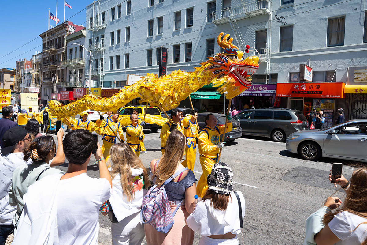 星期六上午十二点,庆祝的游行队伍组成方阵,从旧金山渡轮大厦出发,在旧金山主要街道游行,然后进入唐人街,最后抵达唐人街花园角广场。参加游行的民众呼吁中国同胞,认清中共本质,早日退出中共,获得美好未来。