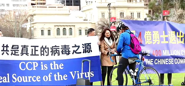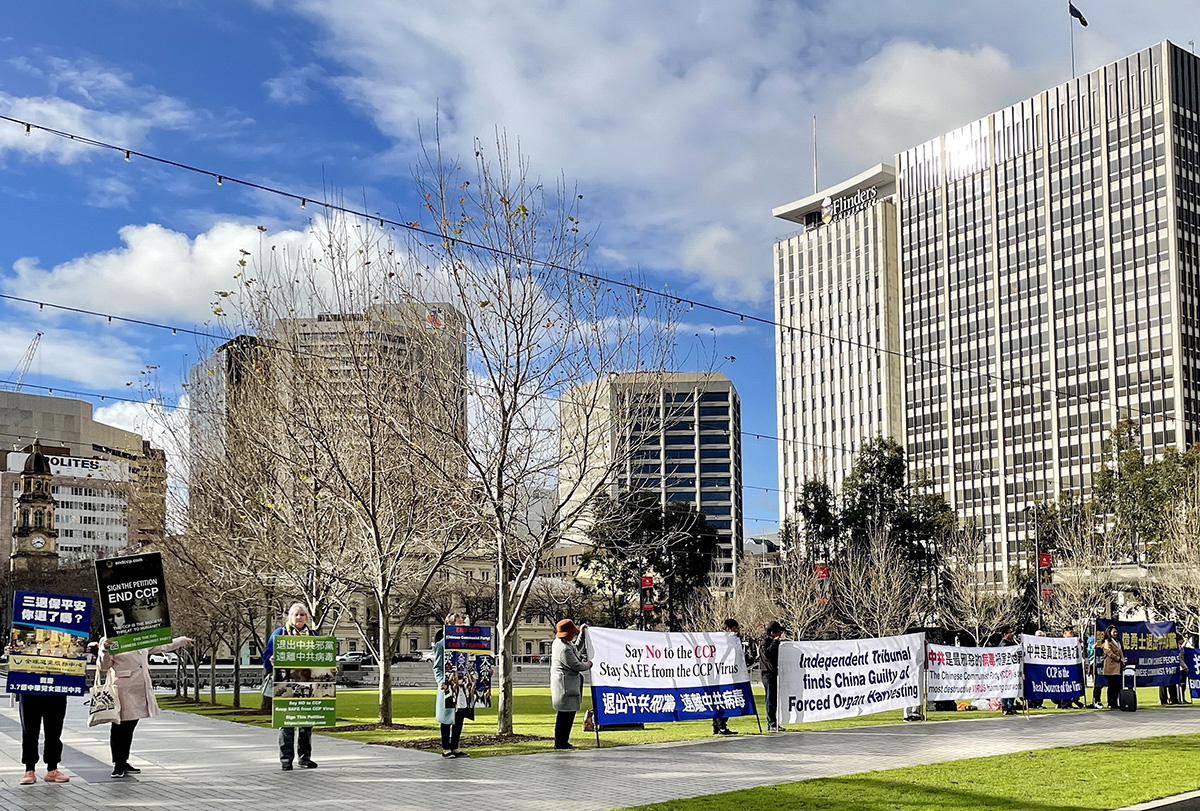 ![]() 图1:二零二二年八月十五日,南澳法轮功学员在阿德莱德维多利亚广场举行集会,庆祝四亿勇士三:退.。 |