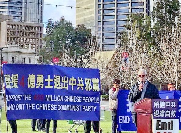 南澳法轮功学员代表布莱恩(Brian)在集会上发言说:“自一九九九年以来,法轮功一直受到中共的残酷迫害,践行真、善、忍信仰的法轮功学员成为在中国和海外遭受迫害的最大群体之一。中共自窃政以来一直靠谎言、暴力镇压中国人民;通过威胁、胁迫和任何其它手段来控制世界。”。