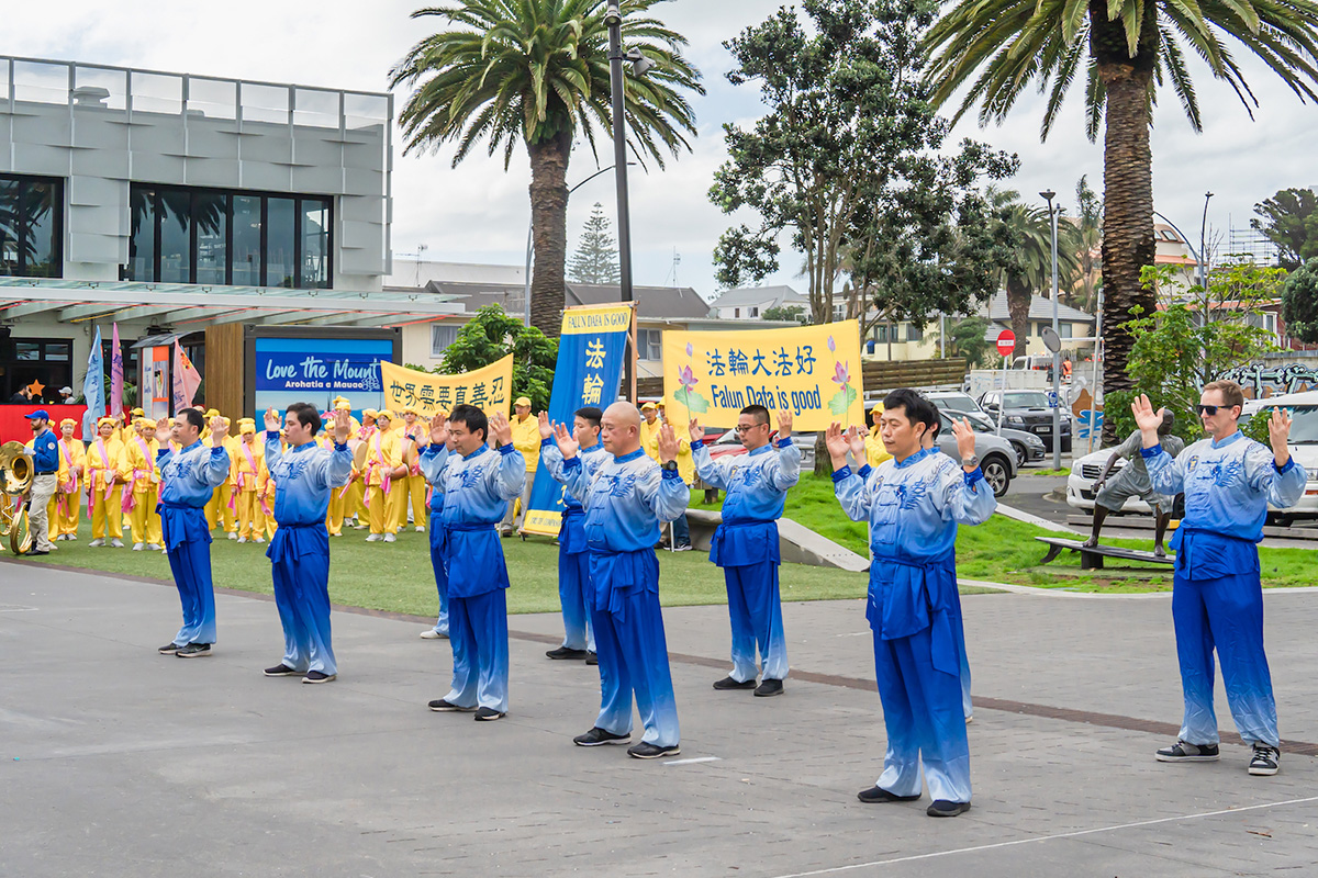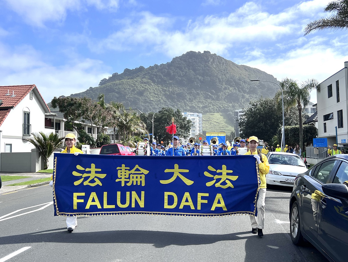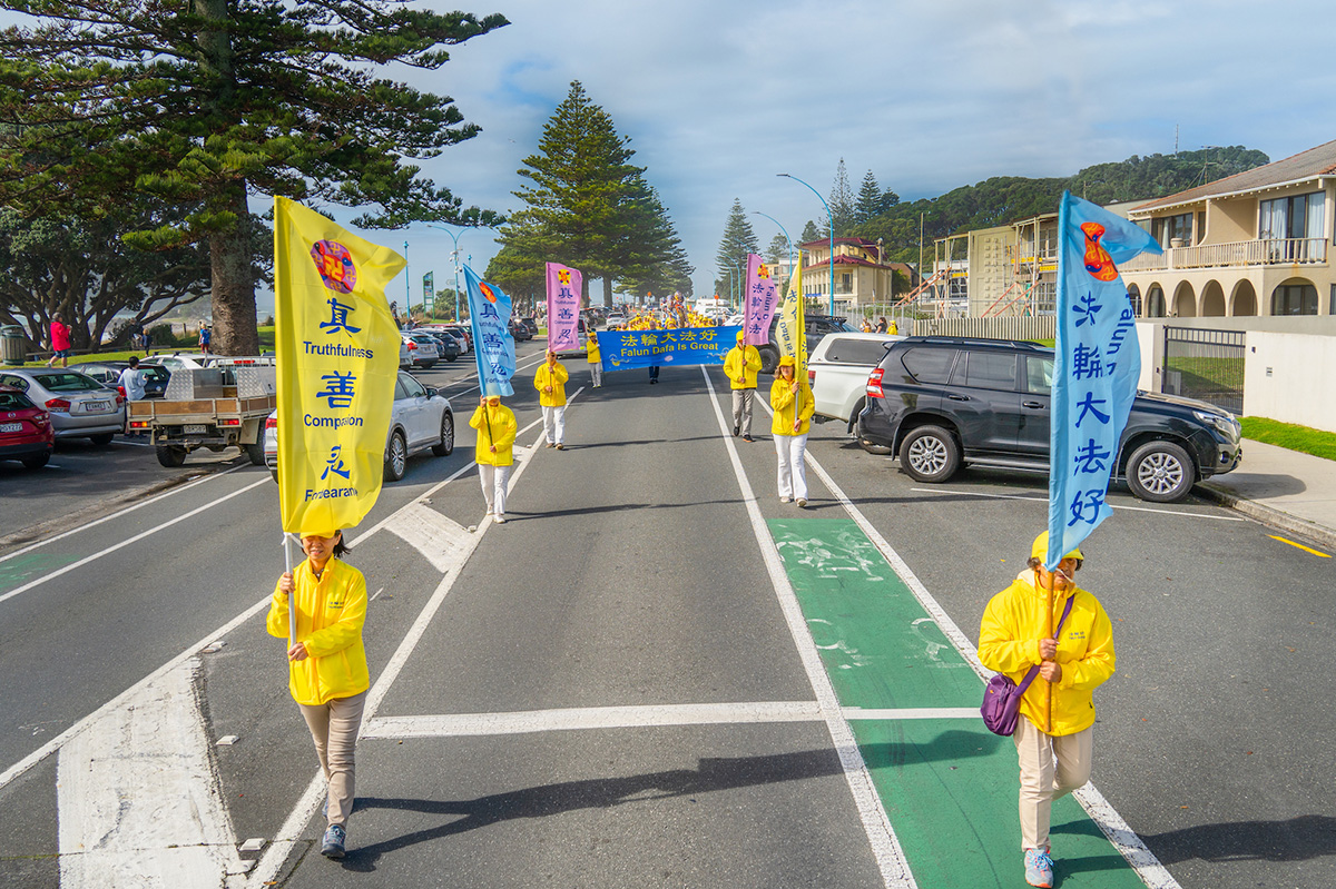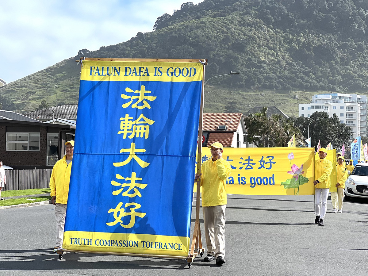 ![]() 图1~9:二零二二年八月二十日星期六,新西兰法轮功学员在陶朗加游行。 |