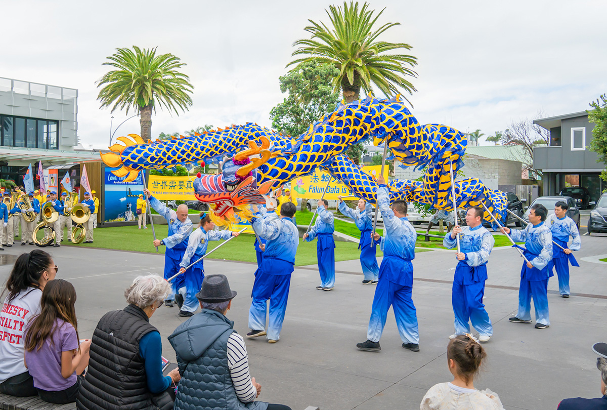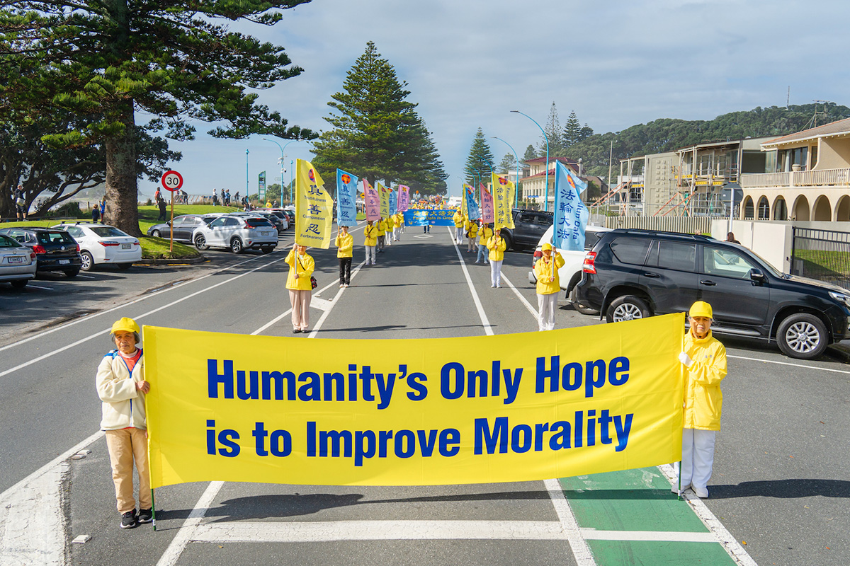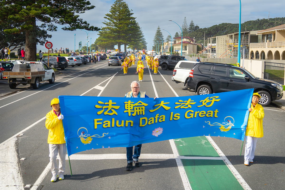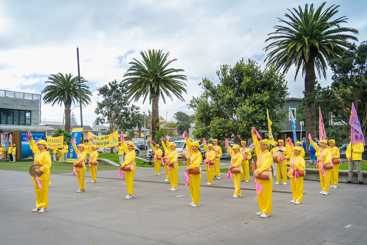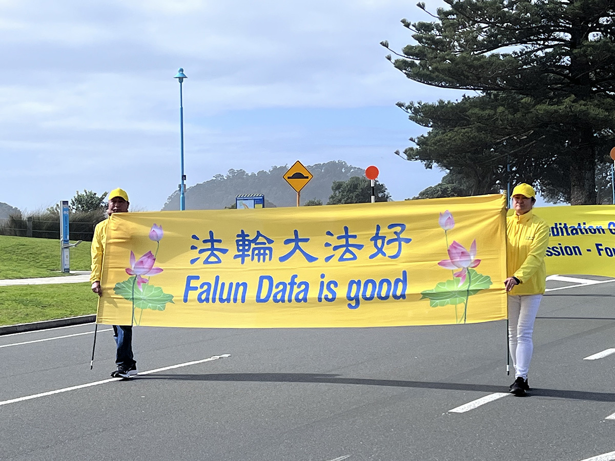 ![]() 图1~9:二零二二年八月二十日星期六,新西兰法轮功学员在陶朗加游行。 |