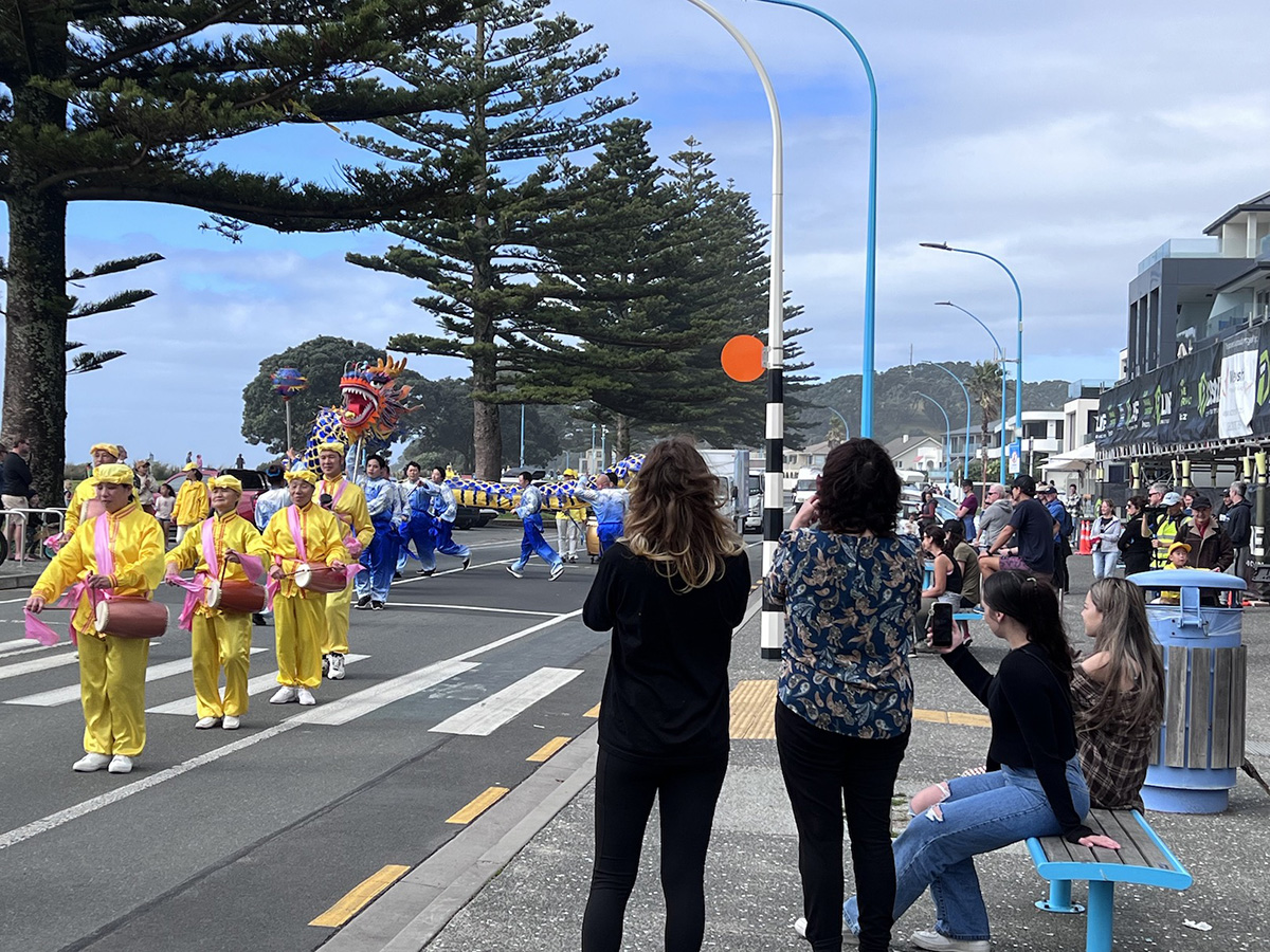 正午时分,游行从陶朗加人群聚集的海边开始,一直到市中心,法轮功学员组成的天国乐团、腰鼓队、舞龙队的表演吸引了很多人围观,人们鼓掌喝彩。有的人一路跟随着游行队伍。