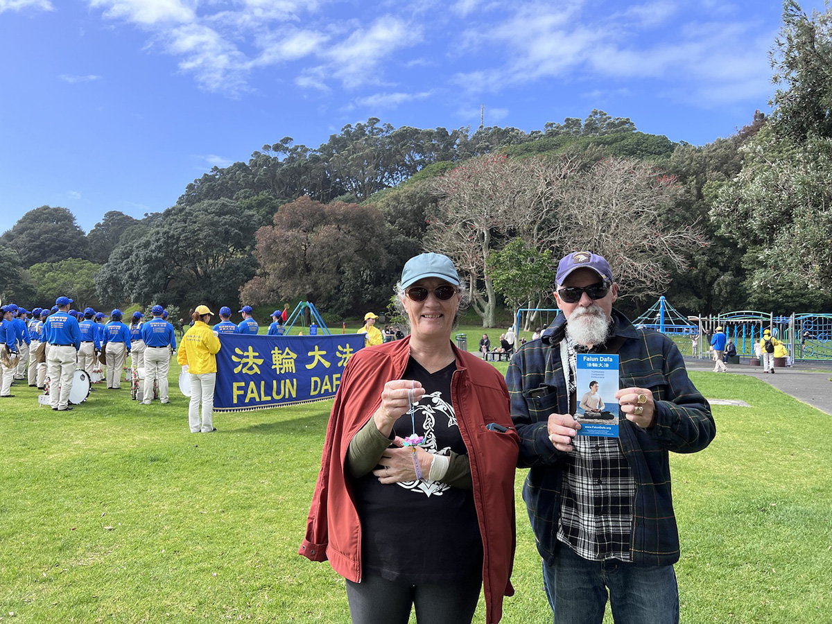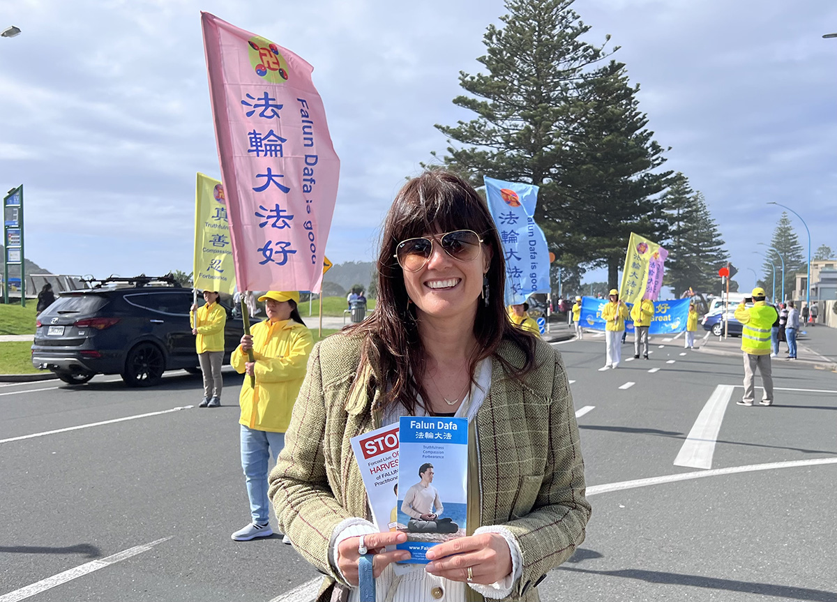 一位观看游行的年轻女士主动上来打听:什么地方能够学习法轮功?因为她阅读了法轮功的单张后,十分感兴趣。她说:“我现在正在自学气功。当我打坐时,我能体会我与地球万物的联系,我能感受祥和平静。我很希望通过修炼,能给身边的人带去好的能量。我平时都是一个人练,所以我特别希望学法轮功,并能加入你们。”