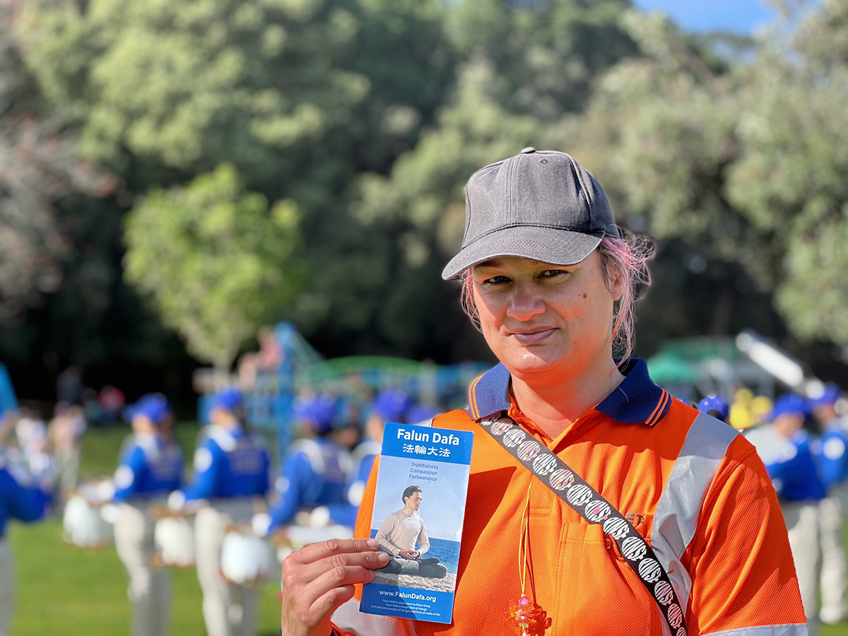 艾丽西娅·雷诺兹(Alicia Reynolds)是今天游行时负责交通管制的人员。法轮功学员的精神信仰使她产生了共鸣。她说:“我也喜欢打坐,我相信气和能量疗愈身心,打坐让我感觉踏实、回归本性。我觉得真、善、忍理念非常好,让人保持善良、和平、宽容,并懂得原谅,这是最佳的生活方式,尤其是现在疫情期间,这种理念会让人保持镇定(bring stability)、走出恐惧。”