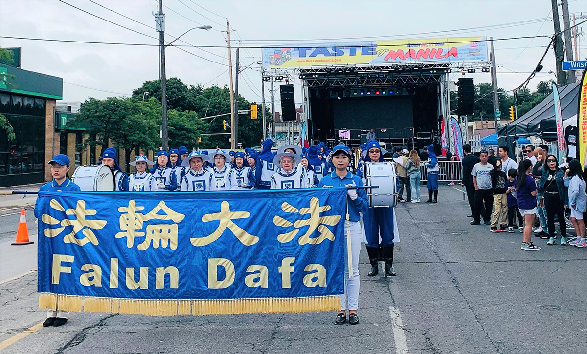 在多伦多的菲律宾“马尼拉之味食品街道节”自二零一四年起开始举办,二零一五年的参加人数就已增加到二十万游客。今年该活动又再度开启,该活动的主办方邀请法轮功学员组成的天国乐团来参加开场表演,天国乐团分别演奏了“法轮大法好”、“法轮圣王”和“神圣的歌”。
