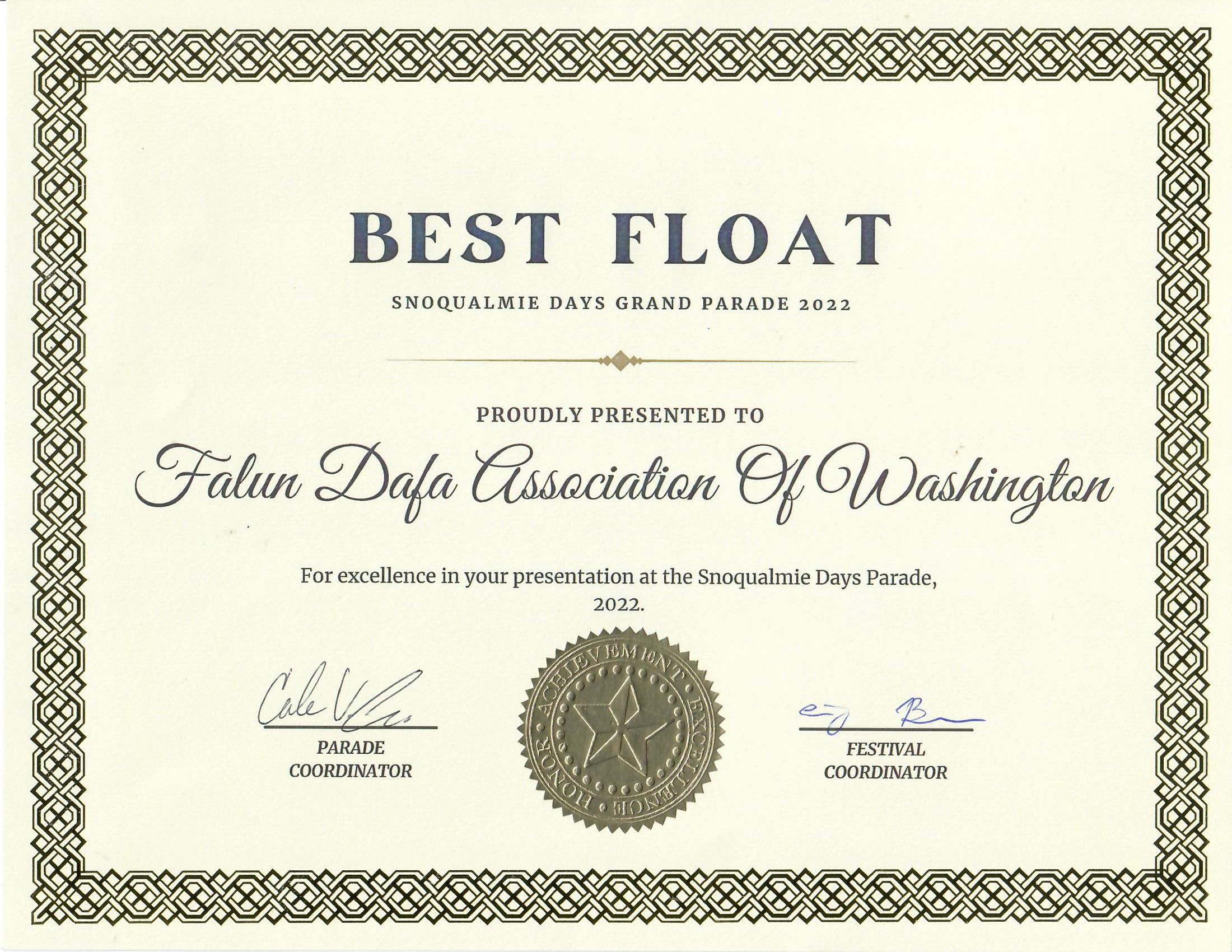 ![]() 图1:法轮功学员的花车队伍荣获了游行的“最佳花车奖(BEST FLOAT) |