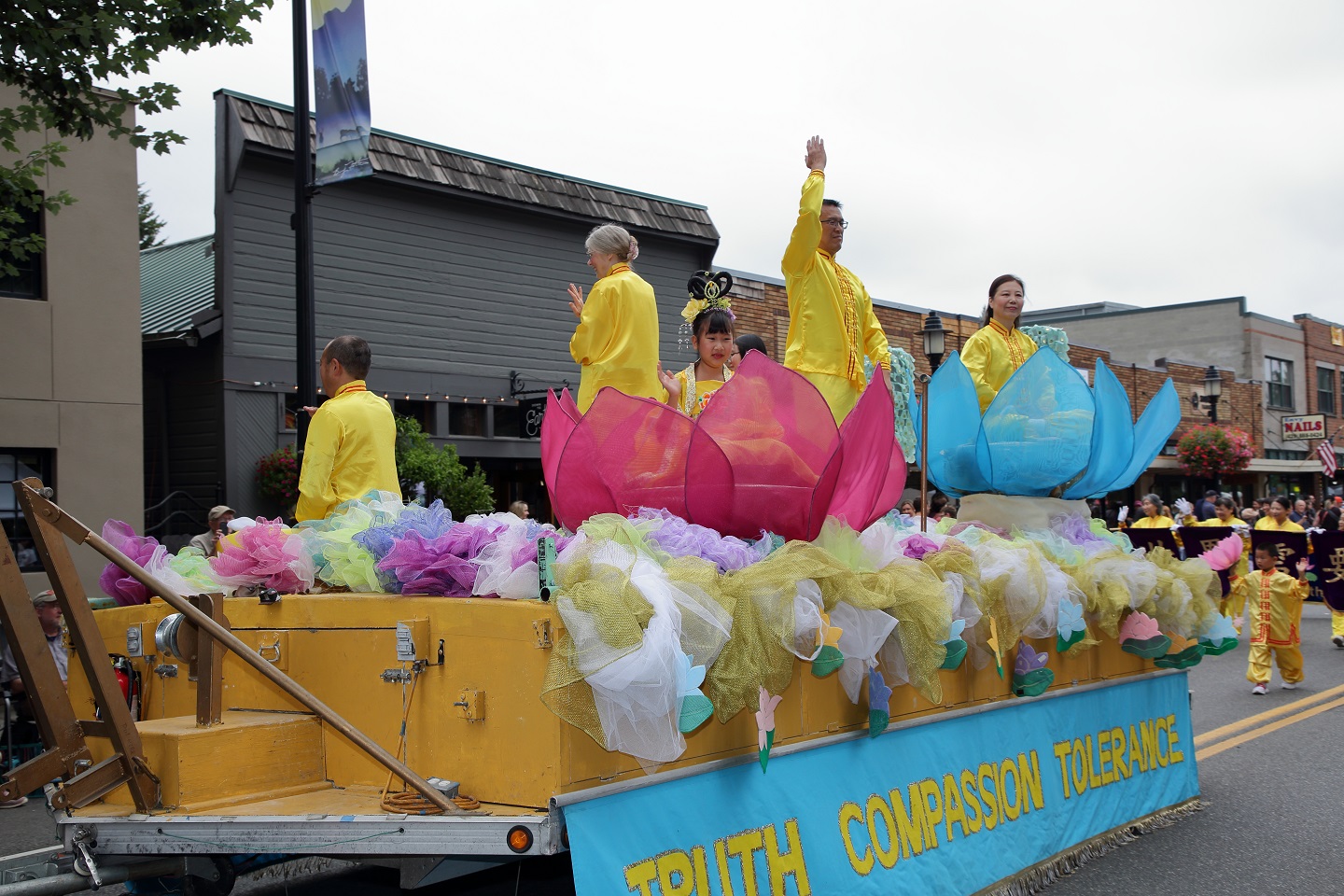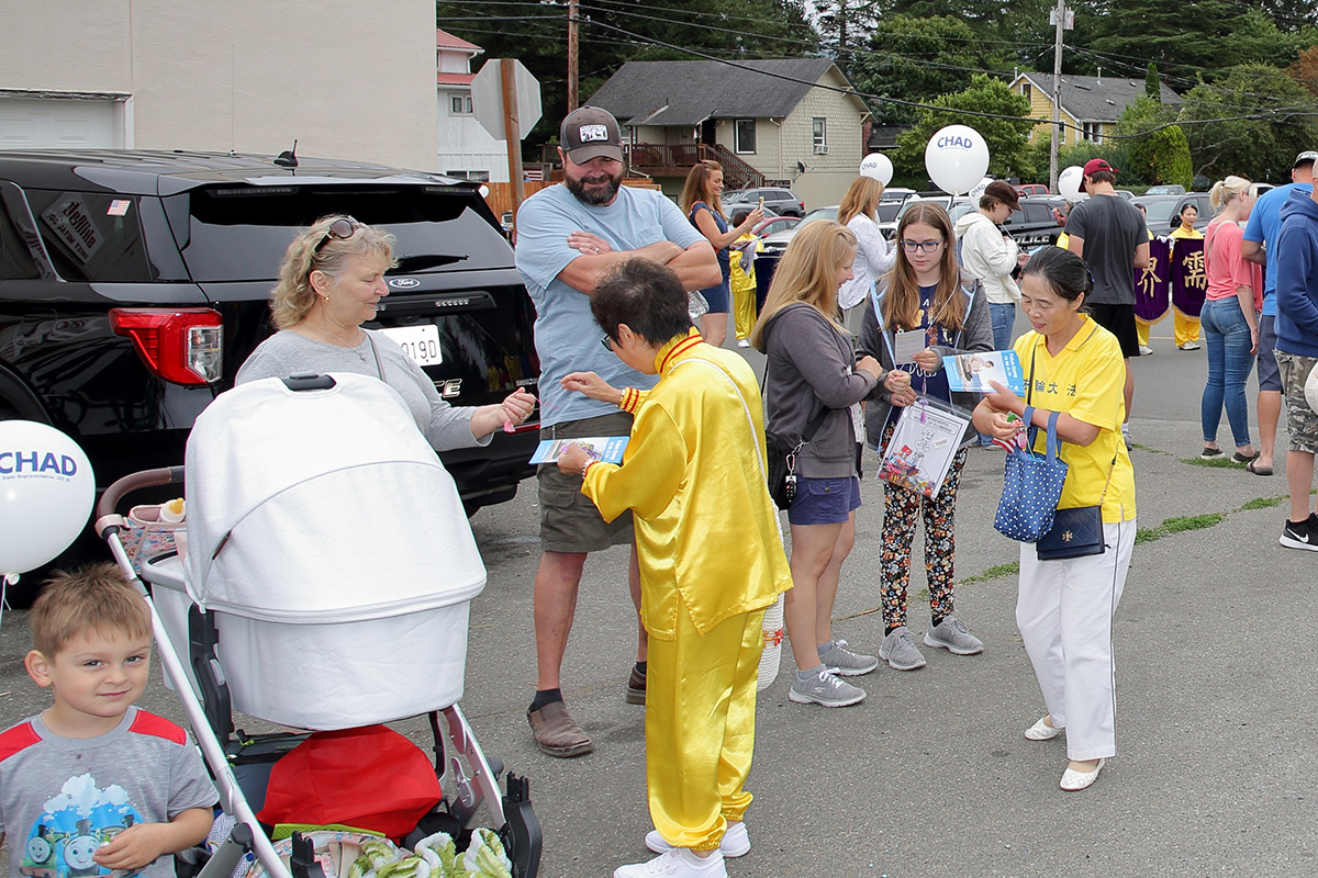 ![]() 图2~6:二零二二年八月二十日,美国华盛顿州西雅图地区的法轮功学员“斯诺阔米日(Snoqualmie Days)”游行上传播大法真相 |