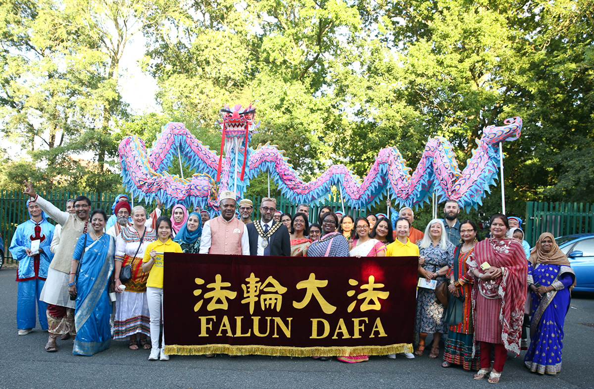 ![]() 图1:二零二二年八月二十一日,英国的部份法轮功学员应邀参加比邻伦敦东部的巴西尔登市南亚艺术月的庆祝活动。图为,法轮功学员组成的舞龙队在表演。 |