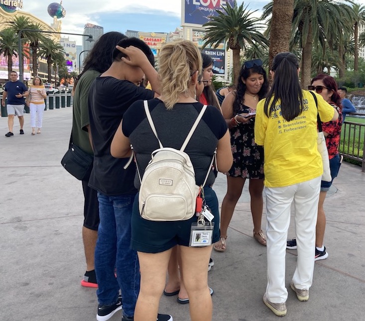 ![]() 图1:拉斯维加斯部份法轮功学员,在景点拉斯维加斯大道集会,声援四亿人退出中共邪*党-组织 |