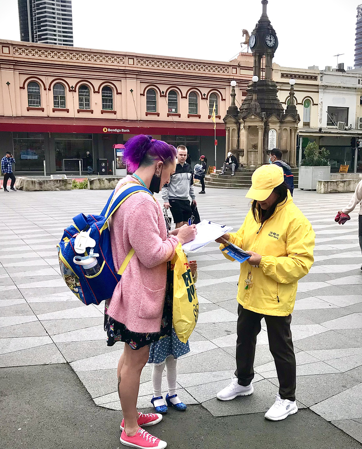 ![]() 图1~2:部份法轮功学员在新南威尔士州帕拉马塔市(Parramatta)市政厅前举行讲真相活动。 |