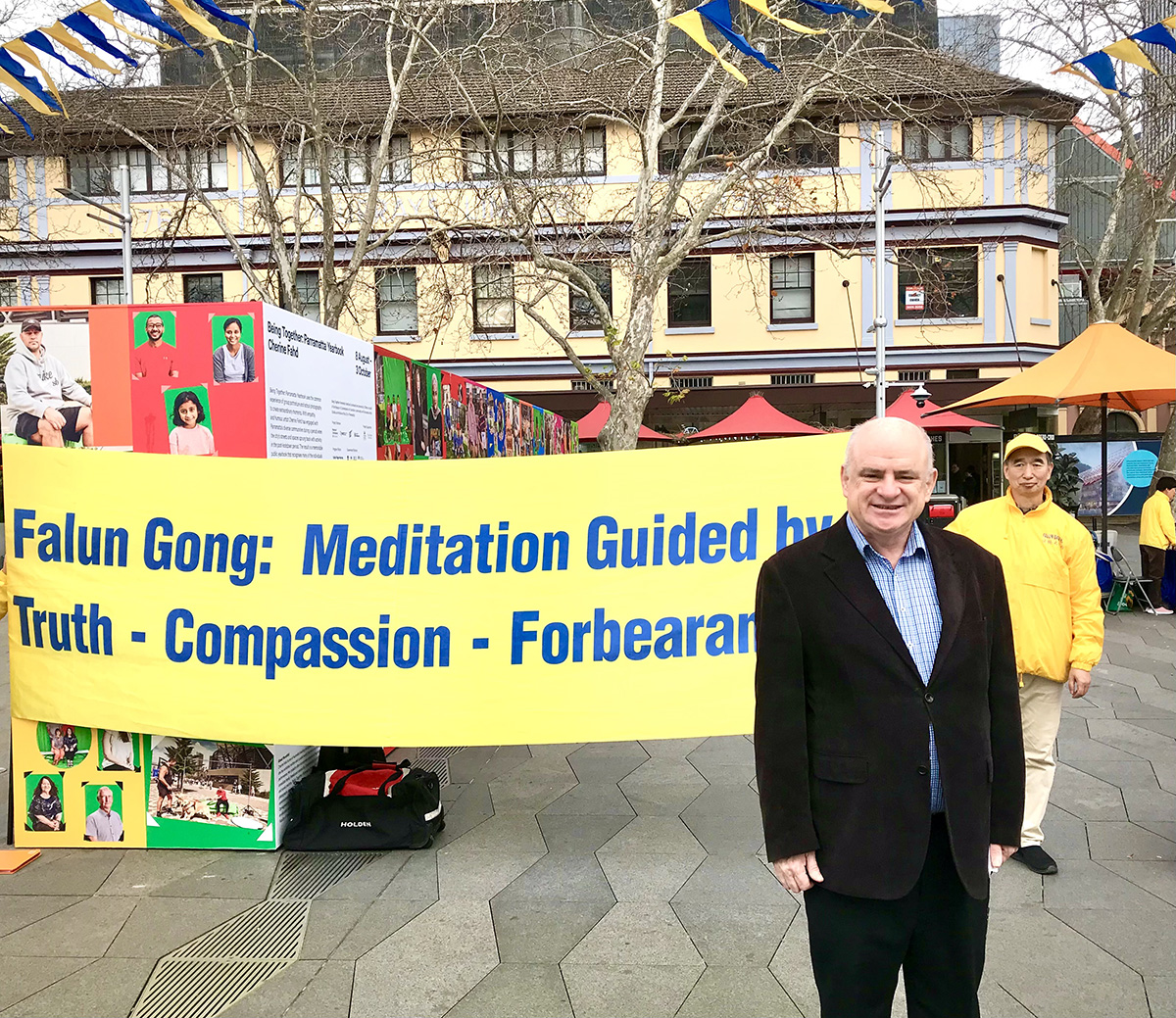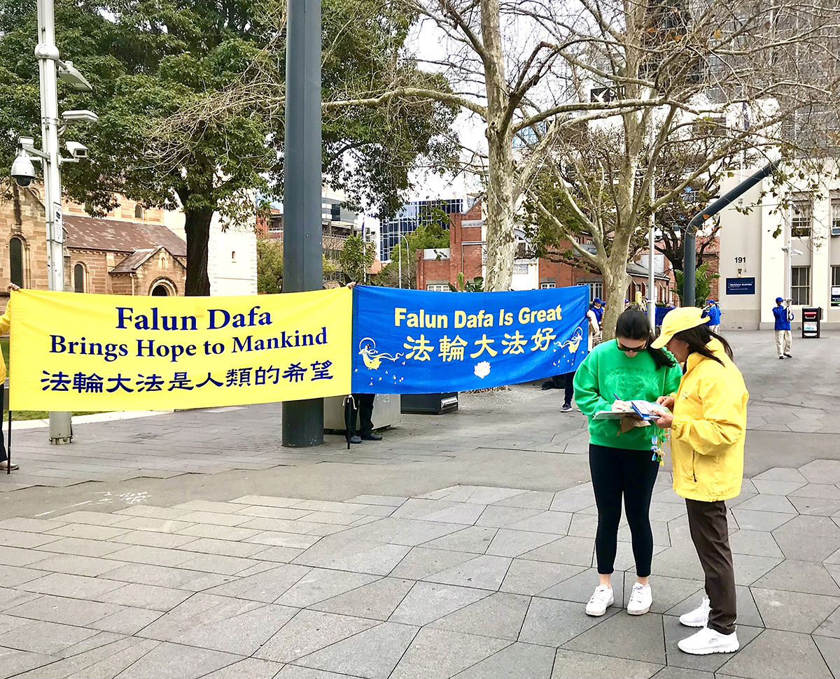 “我认为信念是做到这一点的一种方式。我见过你们打坐,不仅是在帕拉马塔市,我还在城里见过你们,我在霍恩斯比市(Hornsby)看到你们,甚至在莱德市(Ryde)也看到你们,我看到你们在做(讲法轮大法真相),而且做得很好,这是件了不起的事情。请继续保持你们现在的讲真相方式。”