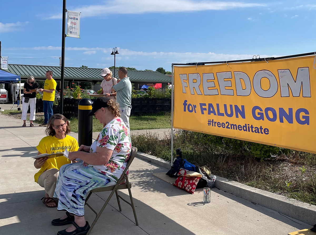 ![]() 图1:二零二二年七月三十日,密苏里州哥伦比亚市的法轮功学员在当地农贸市场入口处拉开“还法轮功自由的大横幅”,进行征签活动。不少过往人士驻足了解,并在征签表上签名。 |