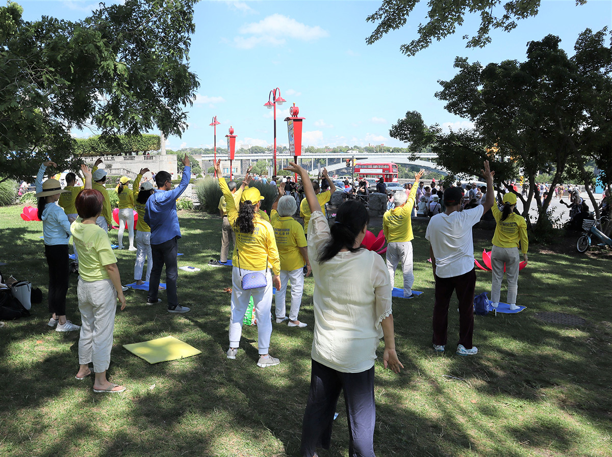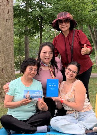 有一家人是从黄刀来多伦多旅游的,他们说没有想到能在这里遇到法轮大法。做父亲的说:“黄刀不一定能见到学员,那我们就上网上跟大家一起学功吧。”