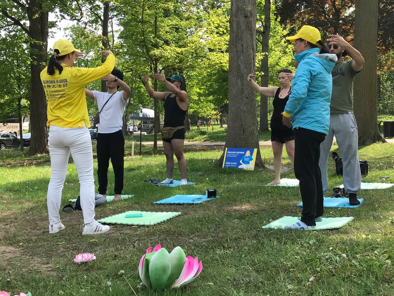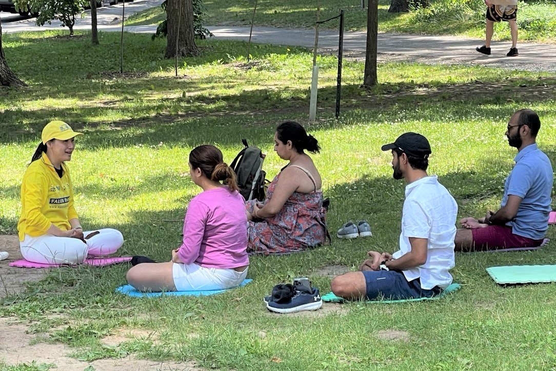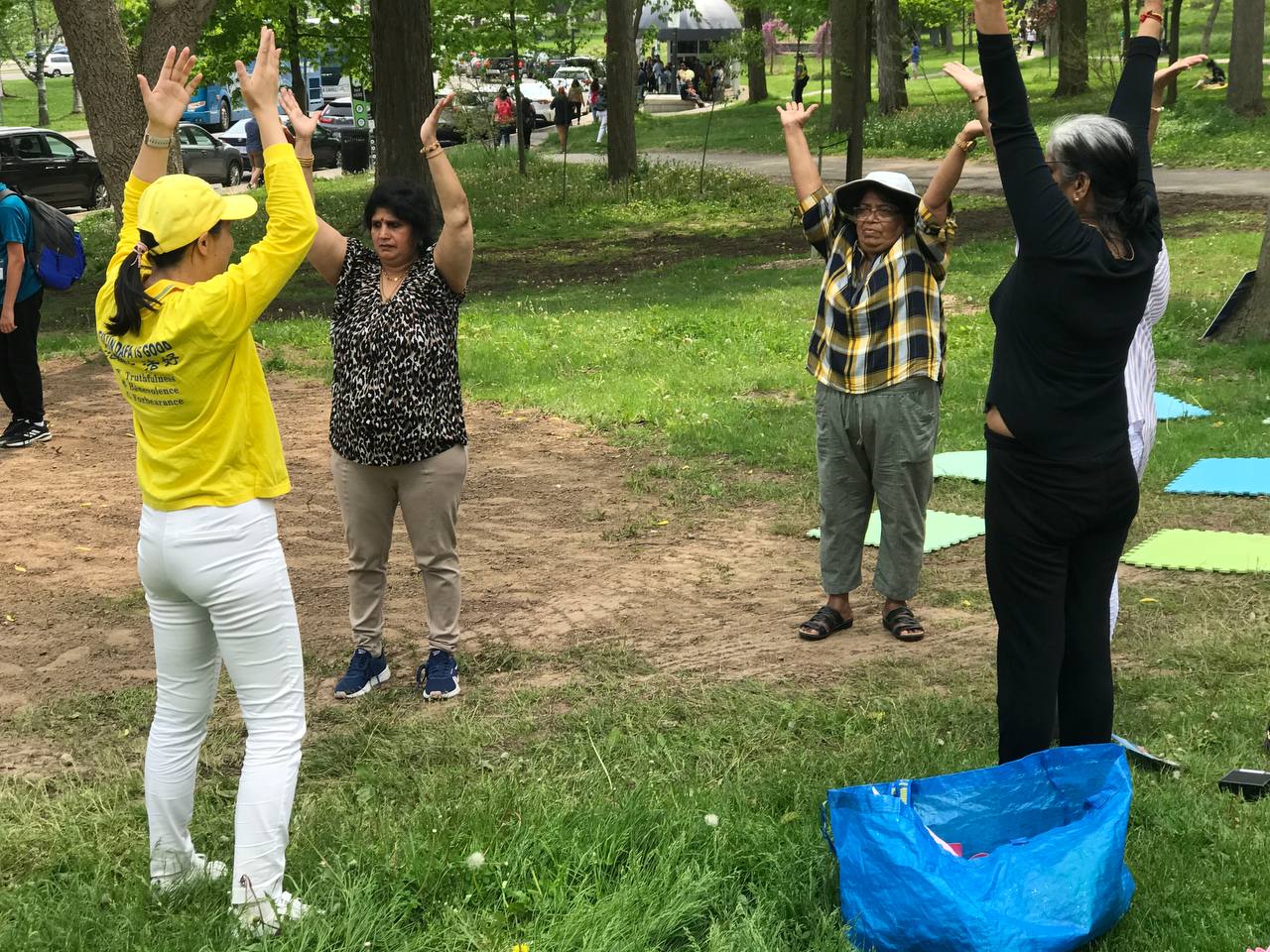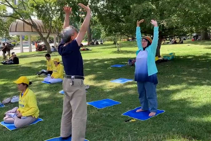 来自阿尔伯塔(Alberta)省的内兹拉(Nezila)和她妈妈过来直接就说想学炼法。学完后表示,很舒畅、很愉悦,准备回家乡之后参加当地的炼功点。她们表示还会上网了解中共迫害法轮功的真相。