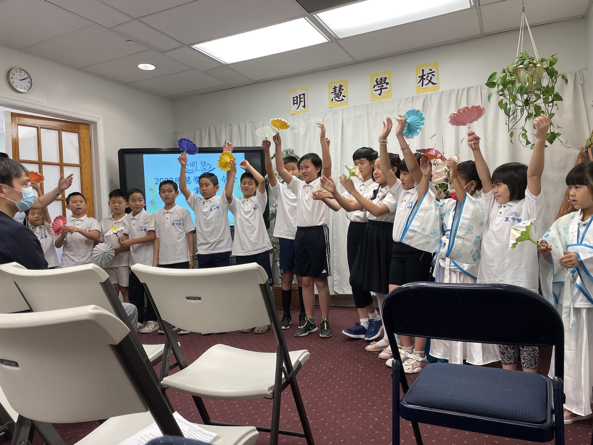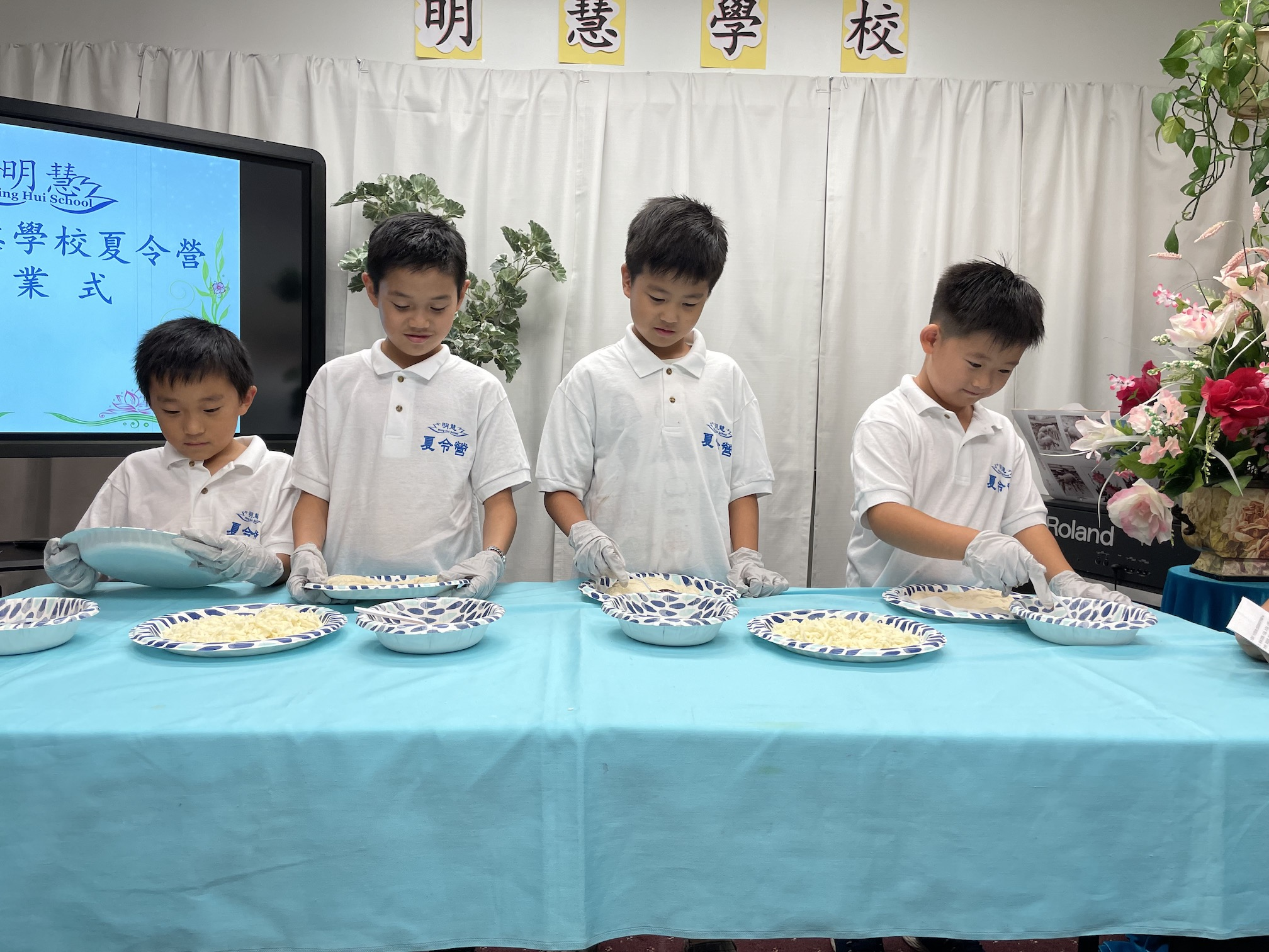 明慧夏令营的内容除了学法、炼功,还包括中文演讲,英文阅读,话剧表演,历史故事介绍,书法,儿童绘画,素描,手工艺术,烹饪,种植,速算及数学,电脑初步,打字练习,唱歌及音乐欣赏。在结业典礼上,同学们在老师的带领下,以朗诵、话剧(中文和英文)、速算、纸艺等多种形式,向老师和家长展示了学习成果,给大家带来了快乐和惊喜。