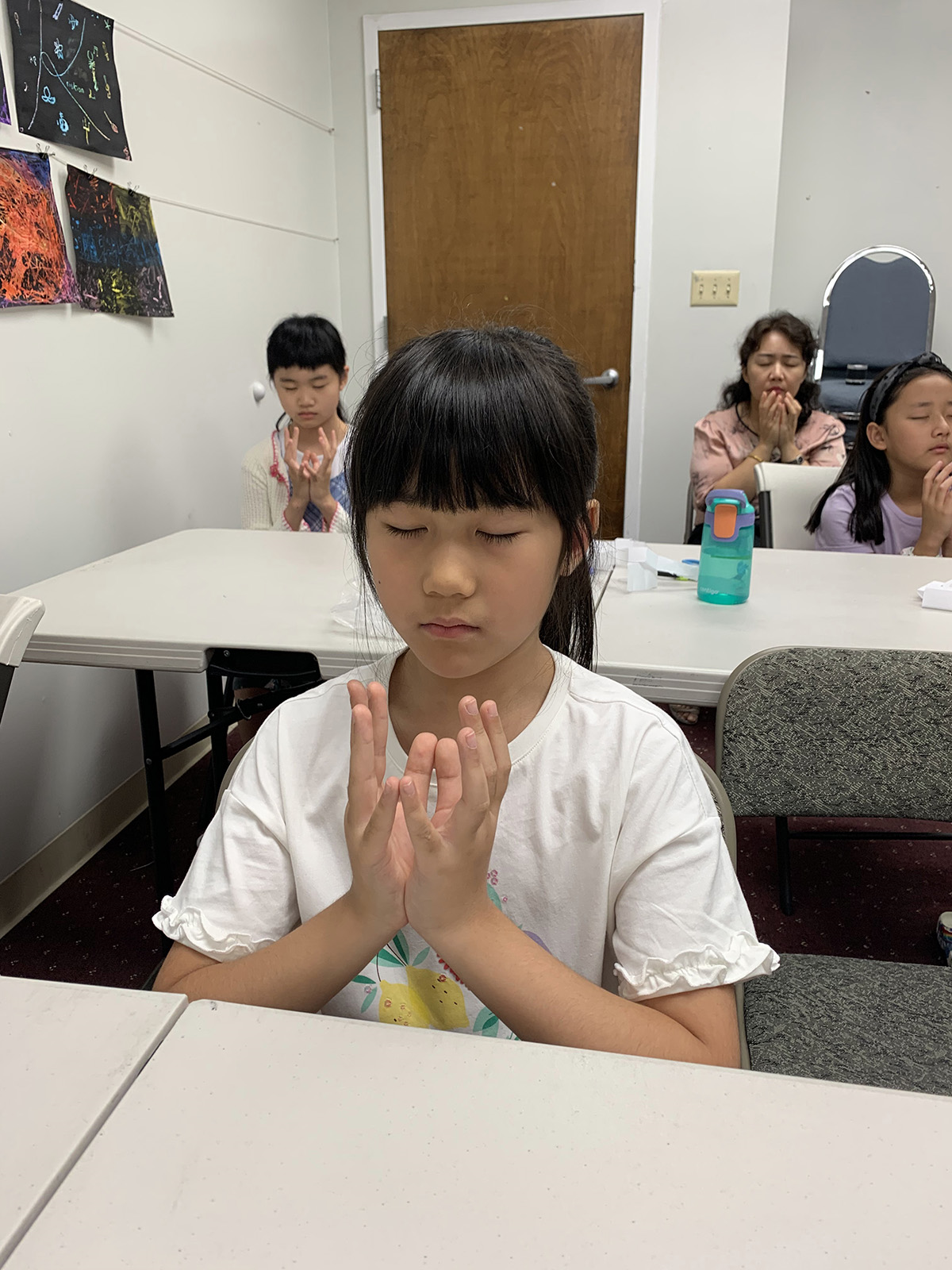 ![]() 图3~4:明慧夏令营小朋友炼功、发正念 |
