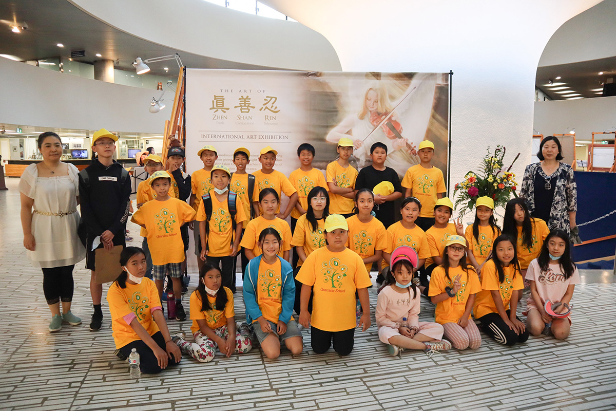 ![]() 图6~7:多伦多明慧学校夏令营带领学生参加真、善、忍美展 |